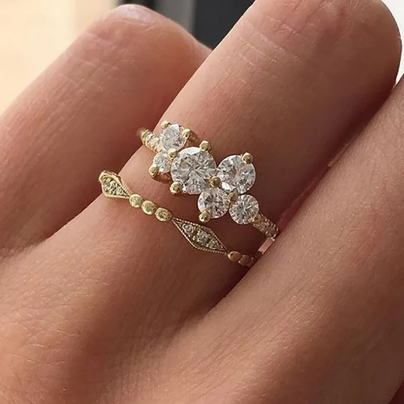 Женские кольца с инкрустацией из циркона, золотые, винтажные, много...