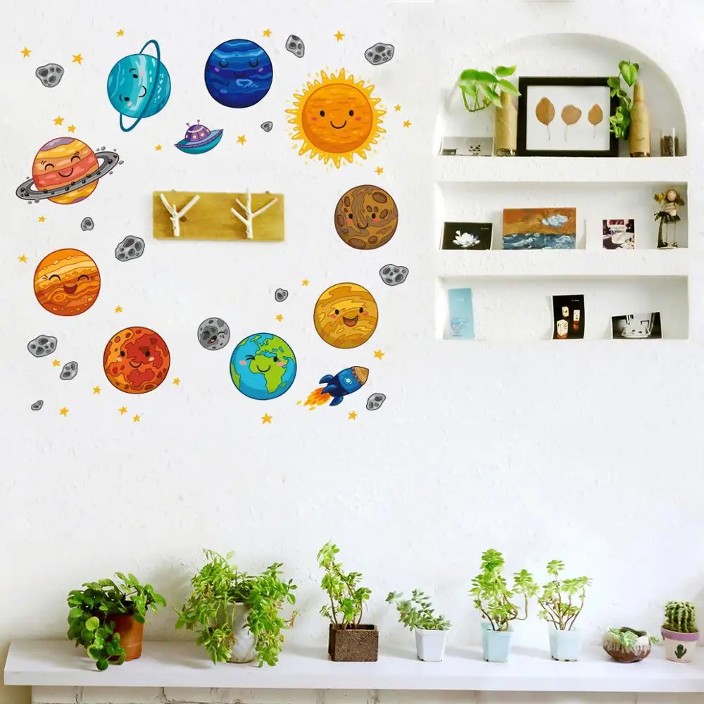 Солнечные планеты, Настенная Наклейка для детской комнаты, спальни, Настенный декор для детского сада, настенные наклейки, домашний декор, художественные фрески, наклейки s, обои