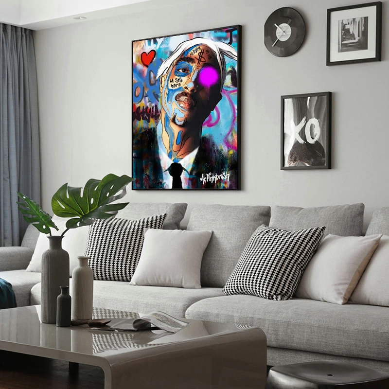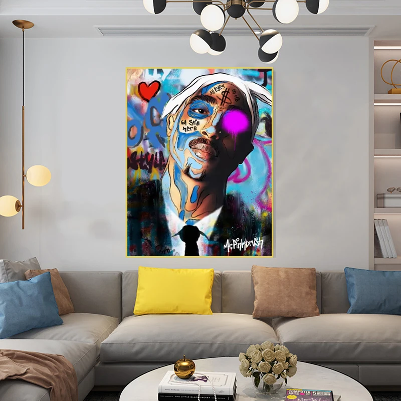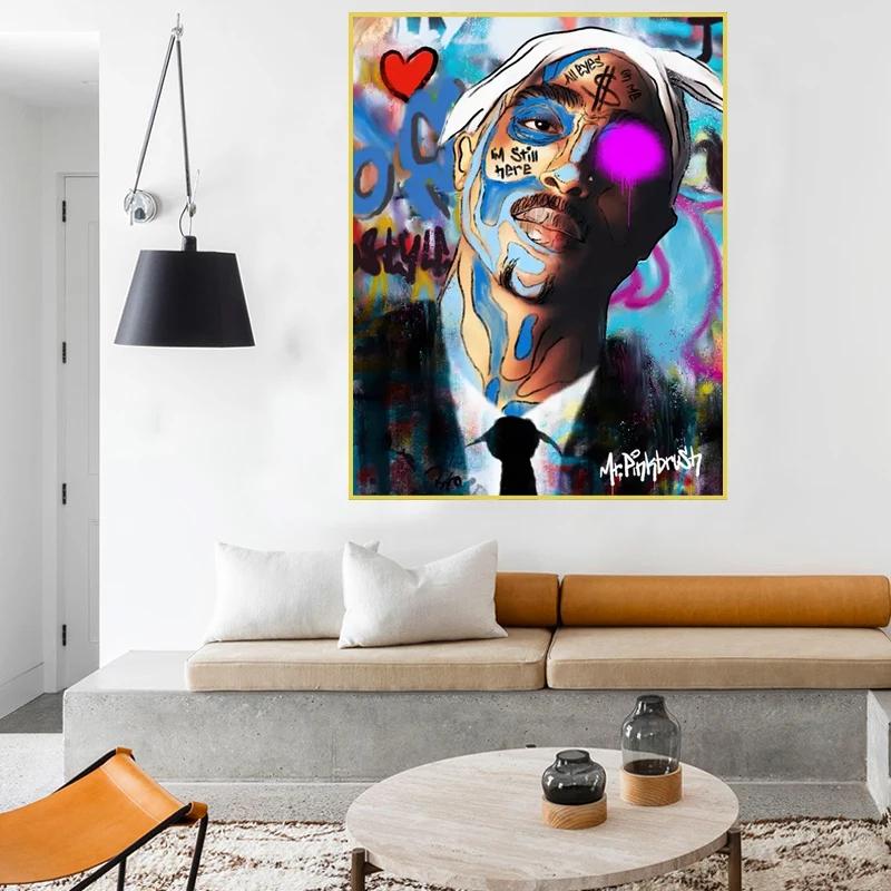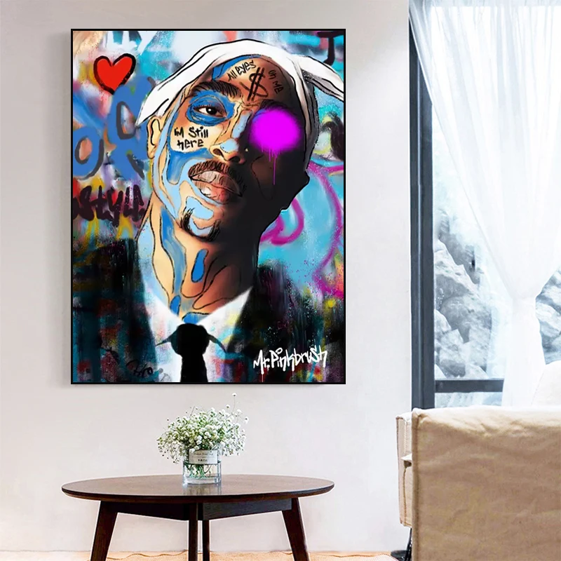 Хип-хоп певец рэпер Тупак граффити искусство на холсте растение Красочные уличные настенные плакаты принты Настенная картина Декор для гостиной
