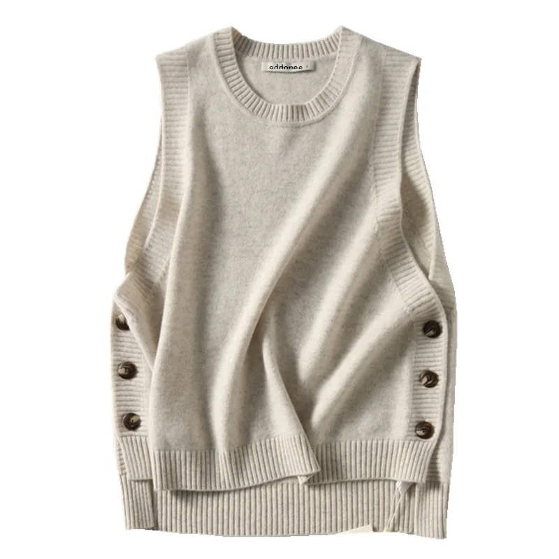 Женский кашемировый свитер с круглым вырезом, однотонный шерстяной жилет, удобный теплый повседневный жилет, весна-осень