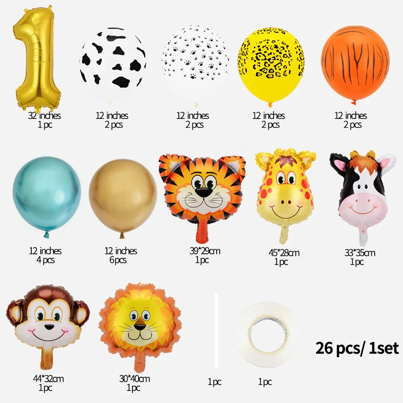 Воздушные шары латексные с золотыми цифрами, 26 шт., воздушные шарики в виде животных набор