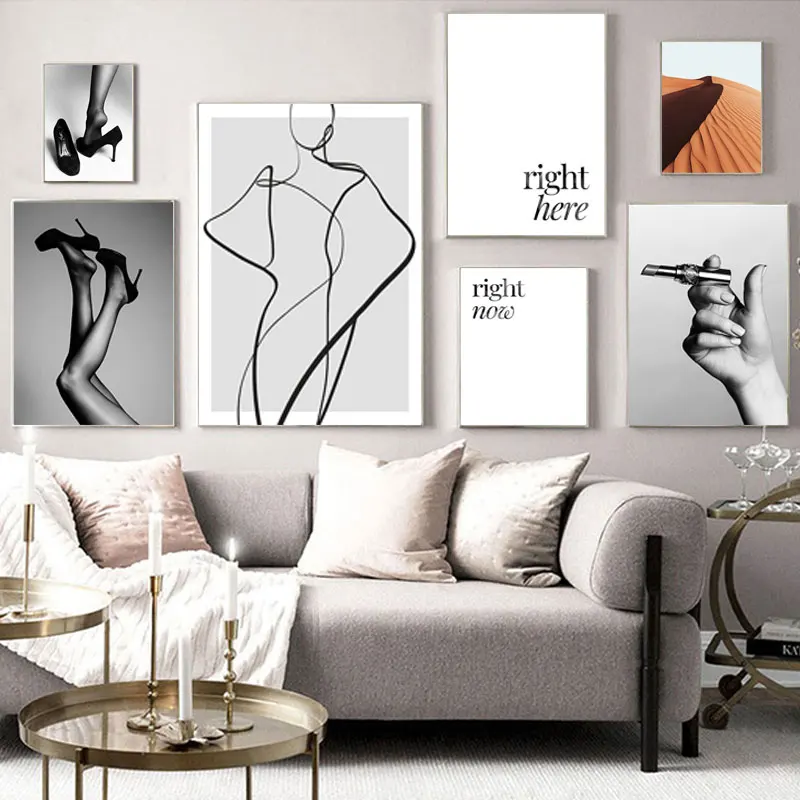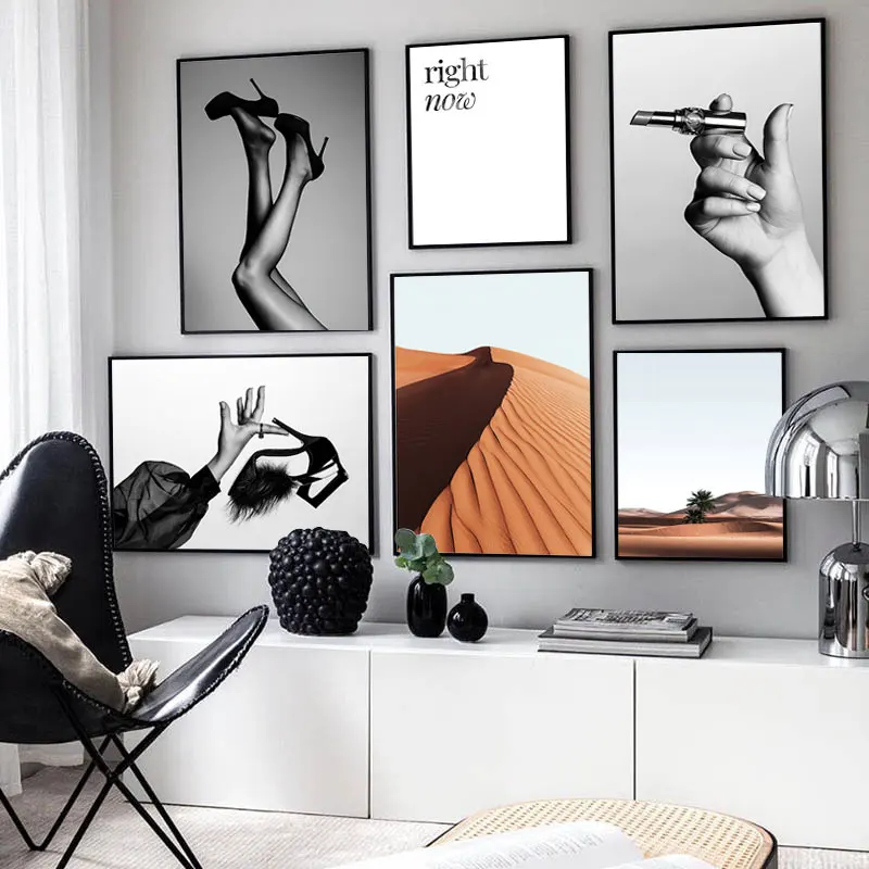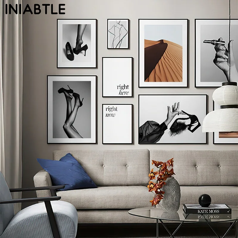 Модные черно-белые сексуальные женские плакаты с принтом пустыни пейзажа стены искусства холста картина современного искусства гостиной украшения дома