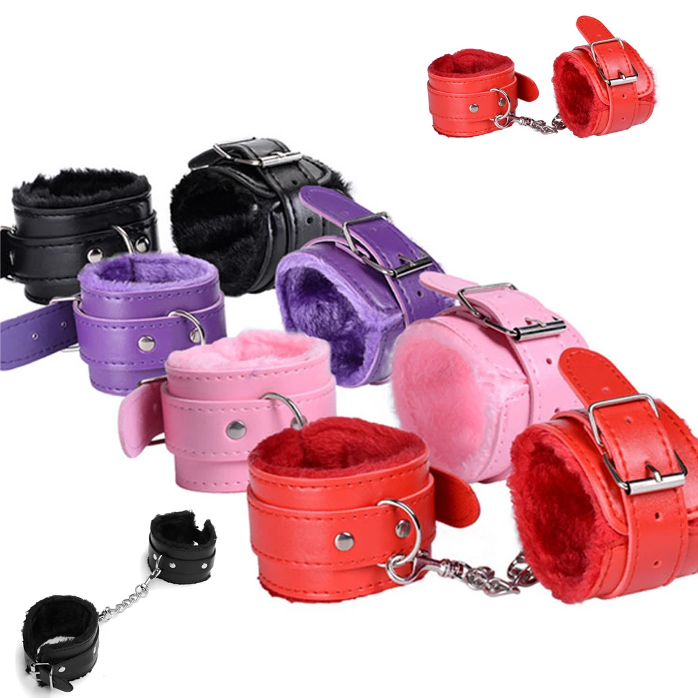 Пикантная игрушка из искусственной кожи наручники на запястье скобы на щиколотке регулируемые сдерживающие секс манжеты ремень Косплей костюмы Красный Черный 4 цвета