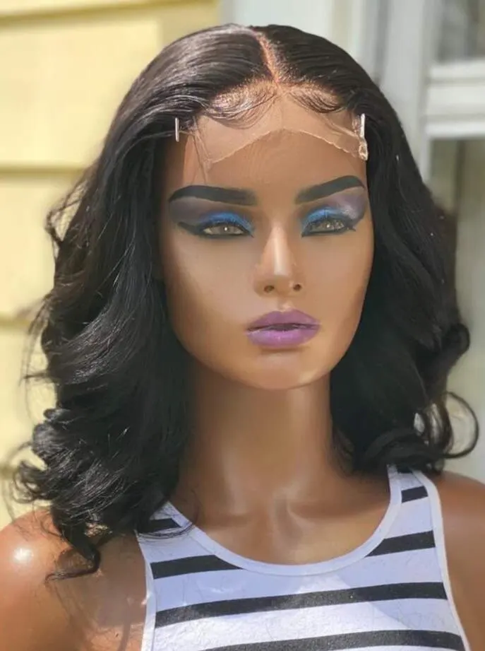 Парики средней длины, швейцарские человеческие волосы на шнурке, предварительно выщипанные бразильские волнистые волосы