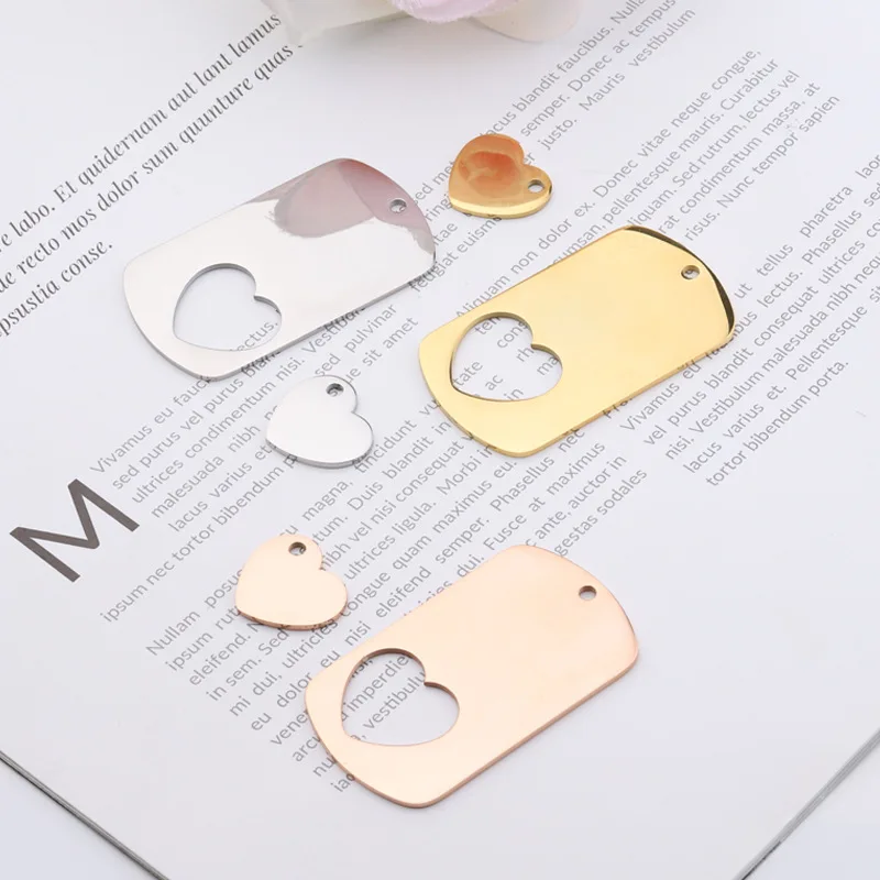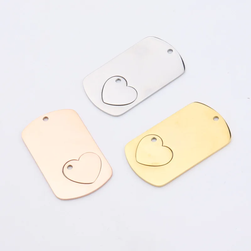100% Нержавеющаясталь Жетоны кулон заготовка волок для лазерной гравировки, покрыто розовым золотомзолотосеребро цвет металлические головоломки с подвесками с зеркальной полировкой, 10 пар