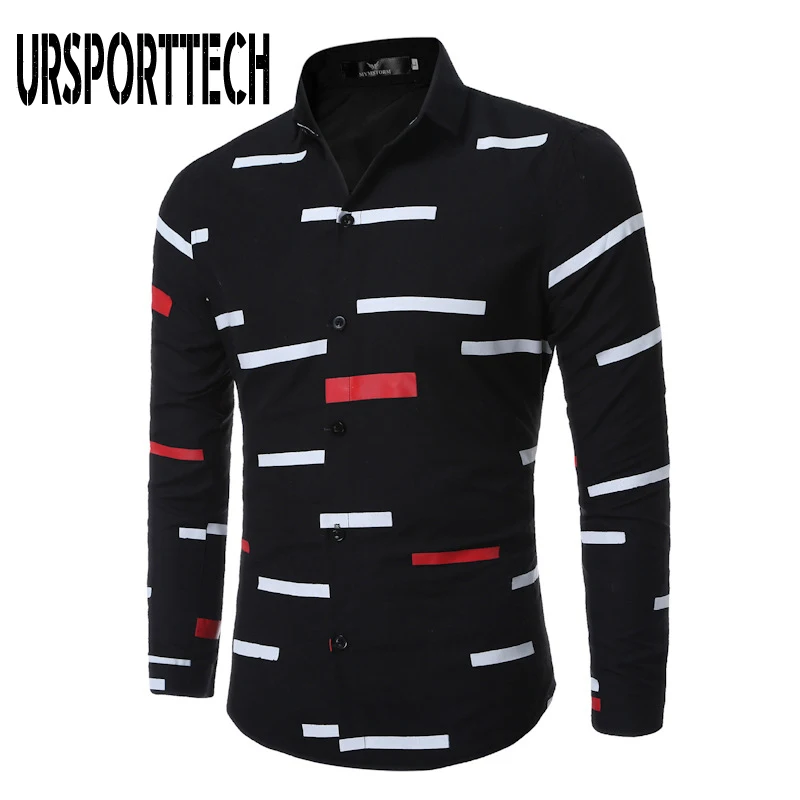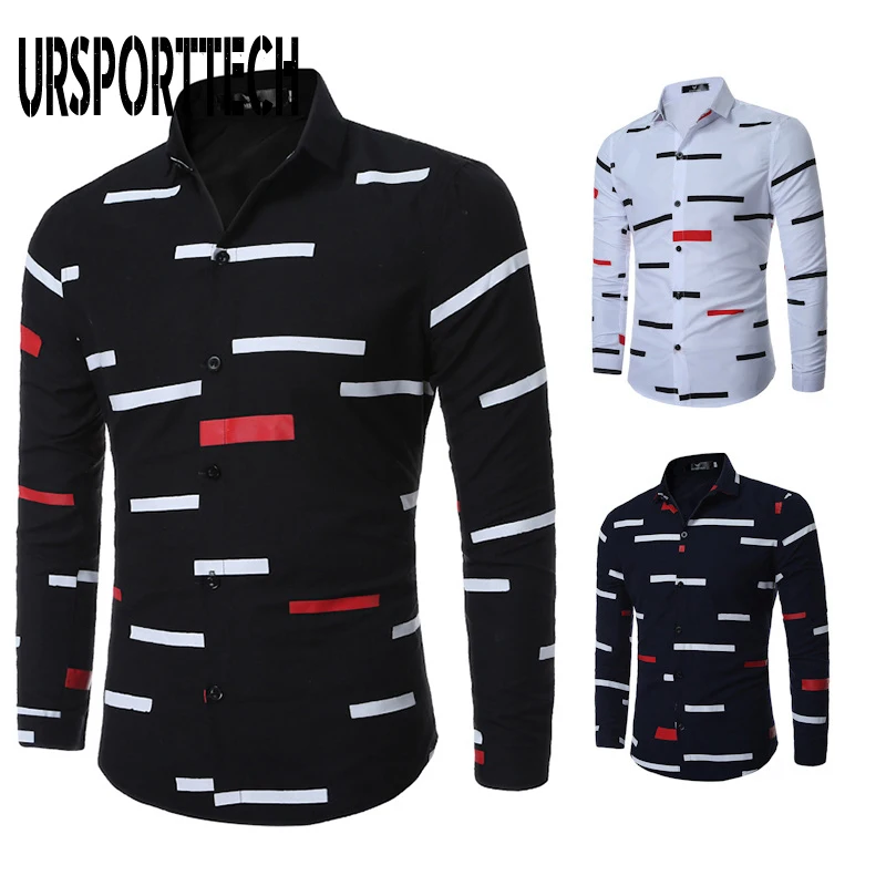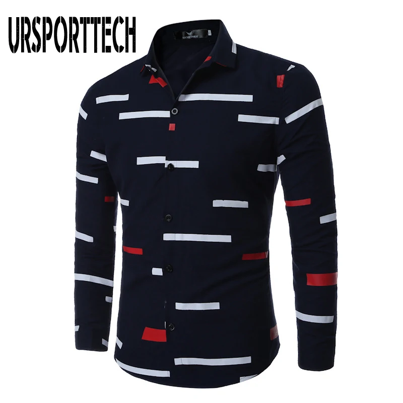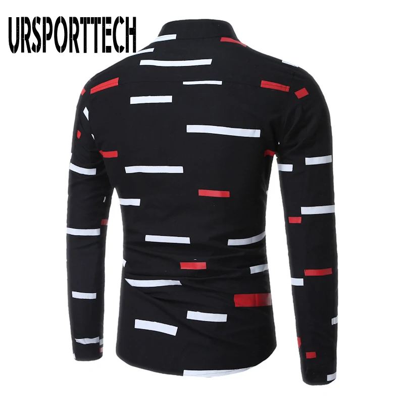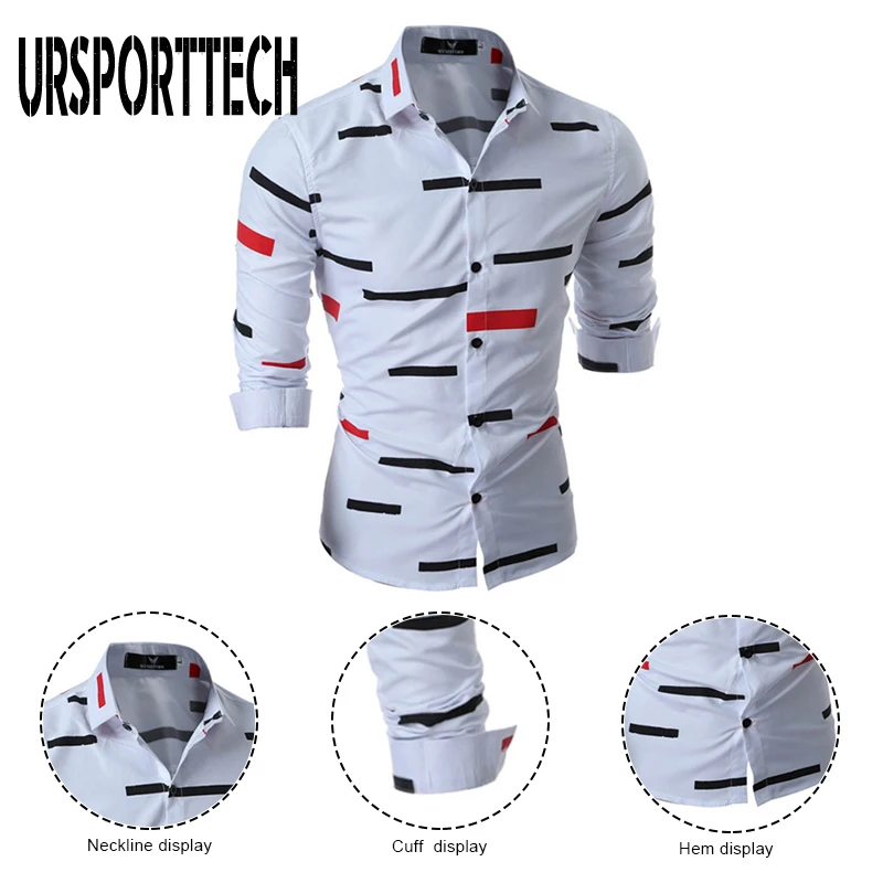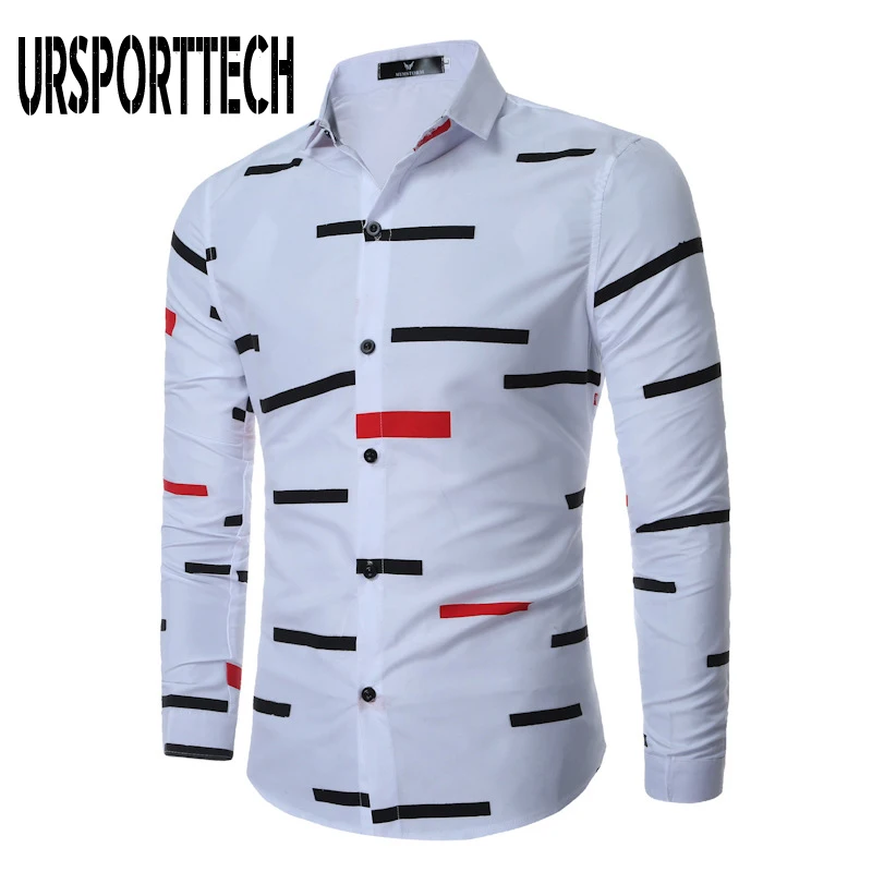 URSPORTTECH Мужская рубашка с длинным рукавом, Повседневная рубашка, Весенняя мода, необычный узор, отложной воротник, приталенная рубашка, мужская одежда