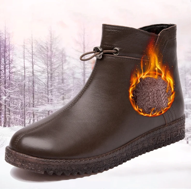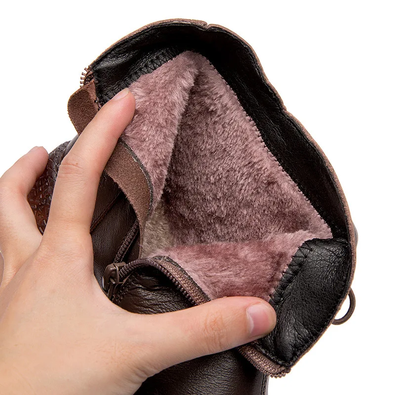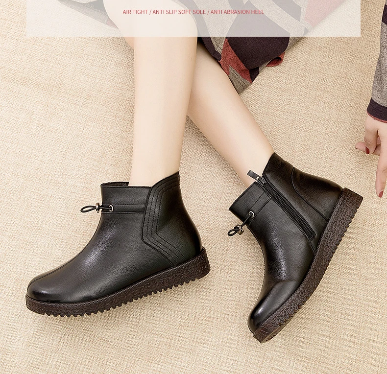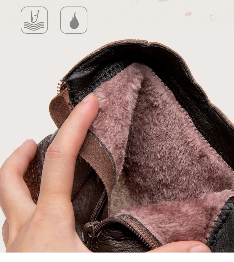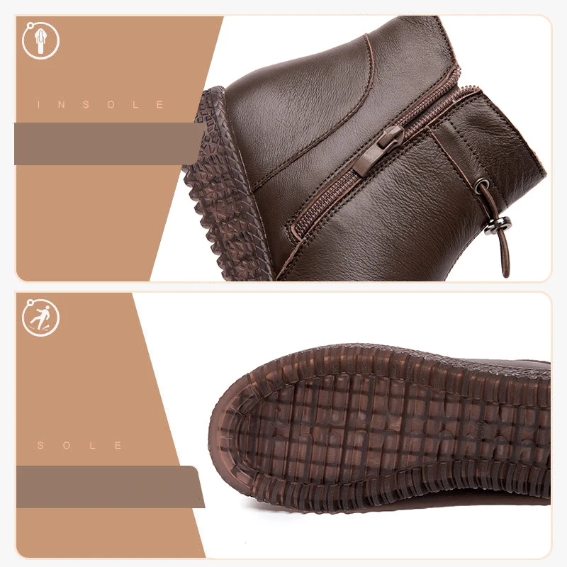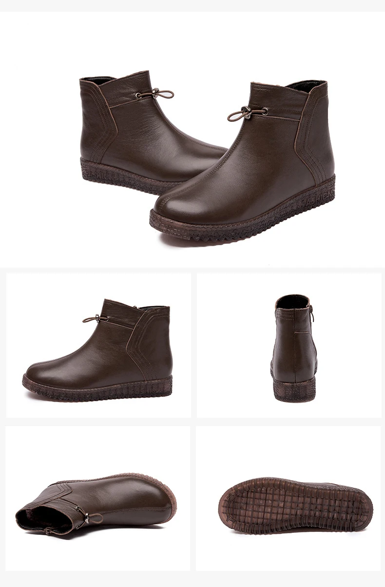OUKAHUIзимние винтажные теплые женские ботильоны из натуральной кож...