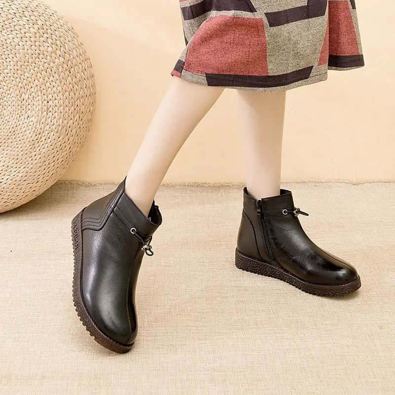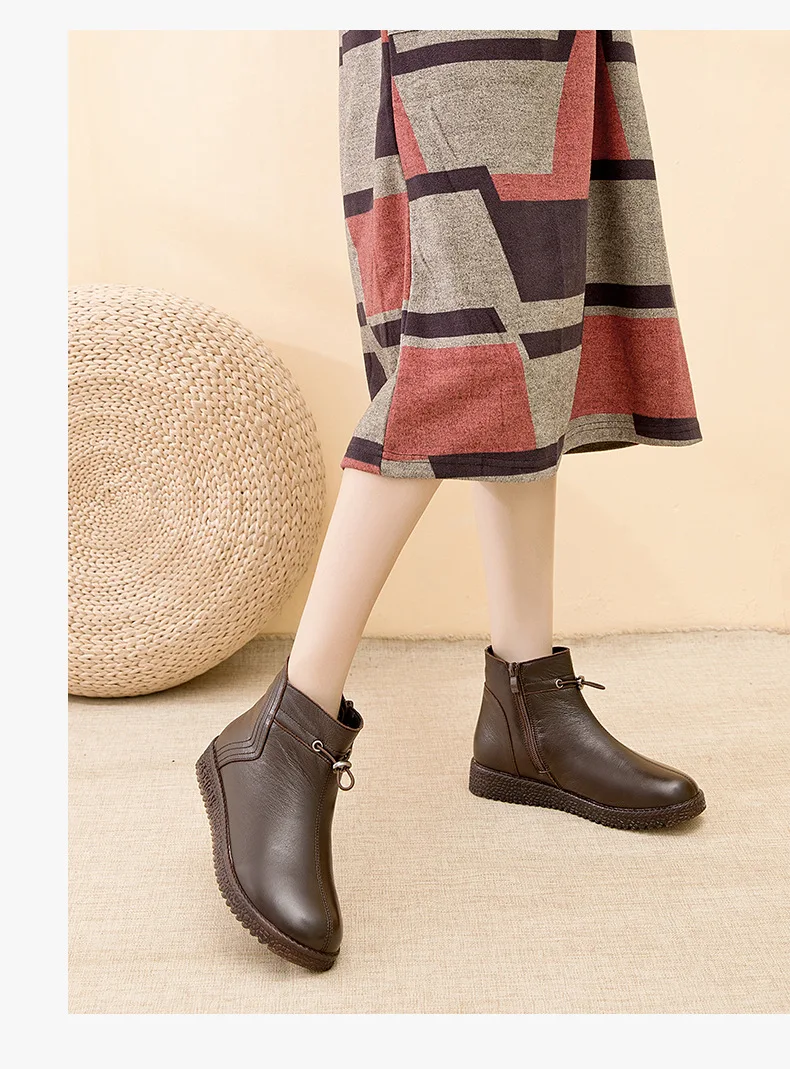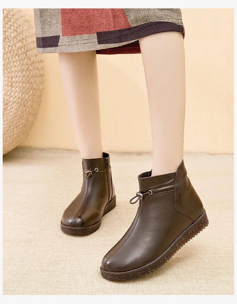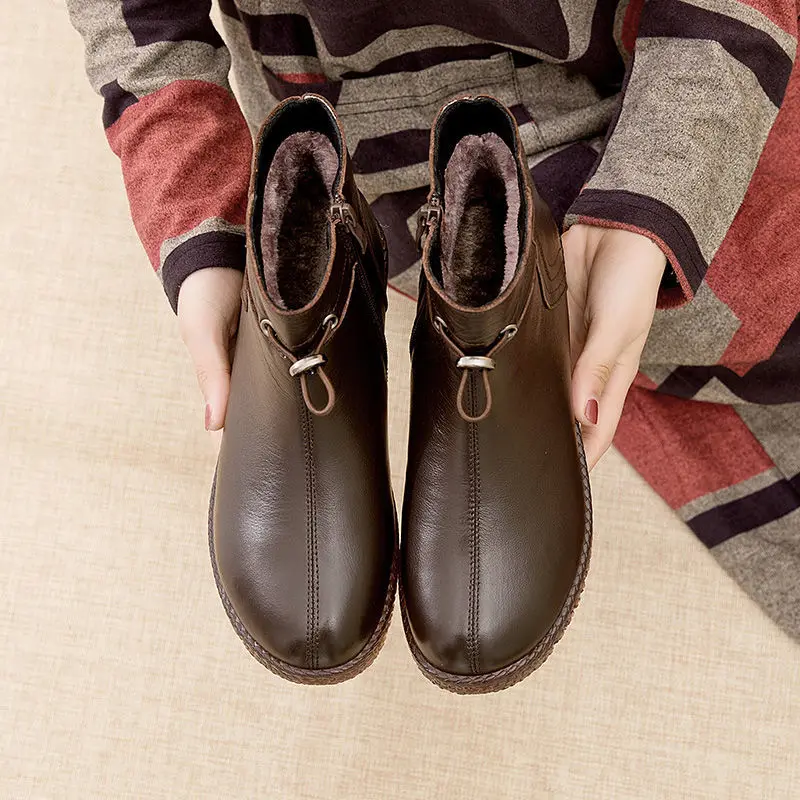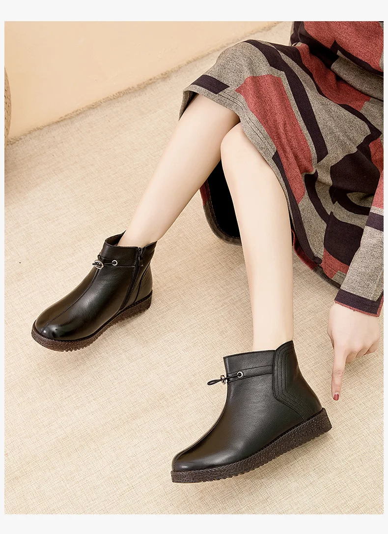 OUKAHUIВинтажные женские зимние ботинки из натуральной кожи на низк...