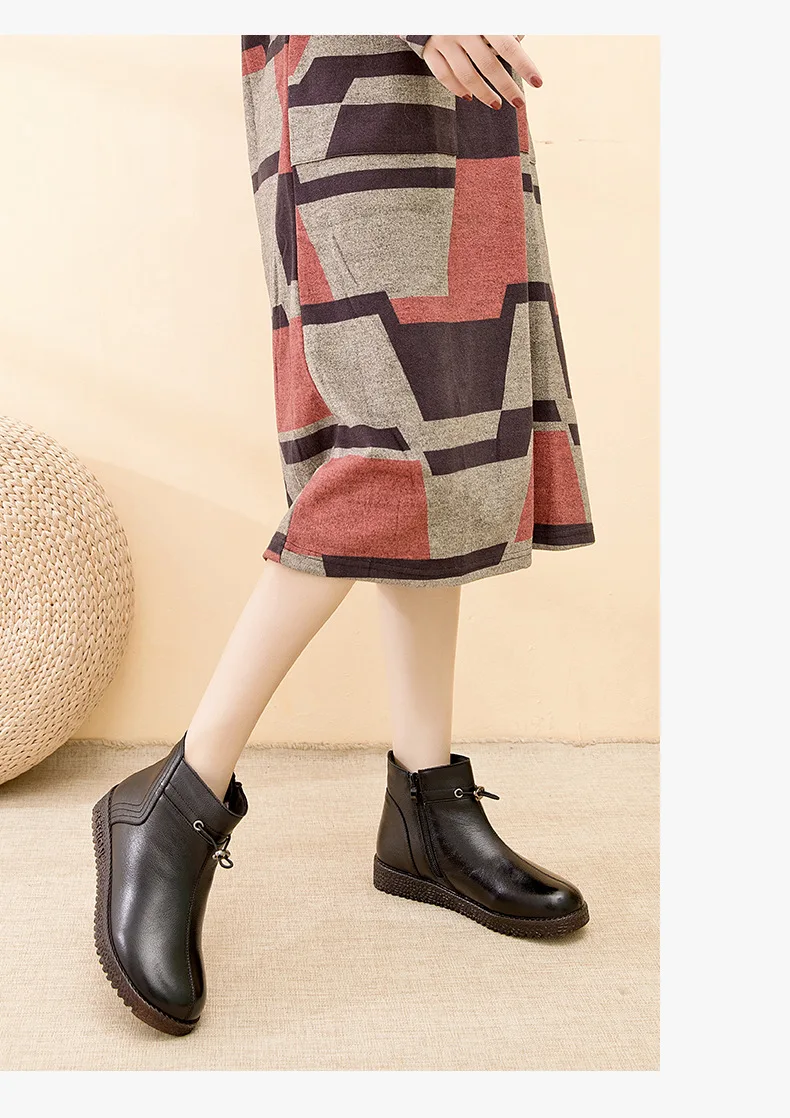 OUKAHUI Осенние Теплые винтажные ботильоны из натуральной кожи для ...