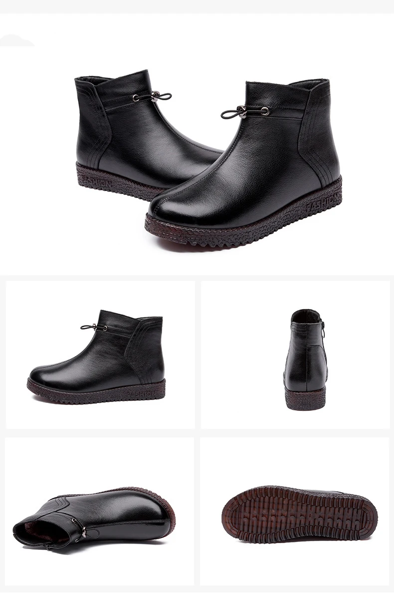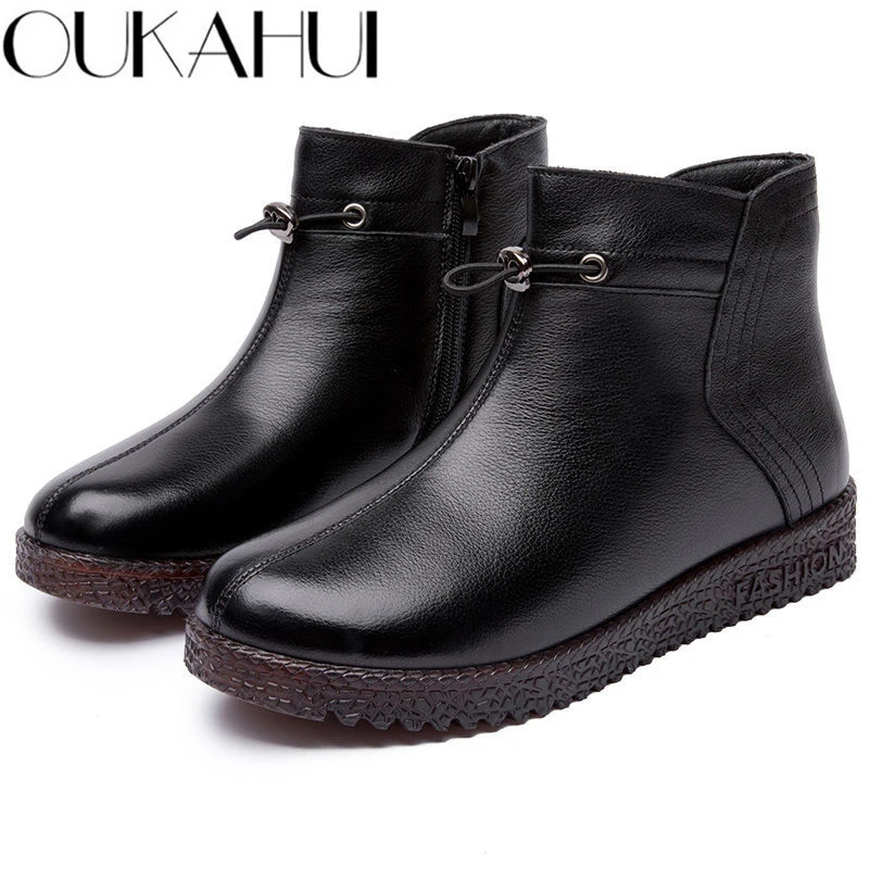 Женские ботинки из натуральной кожи OUKAHUI, черные теплые ботинки ...