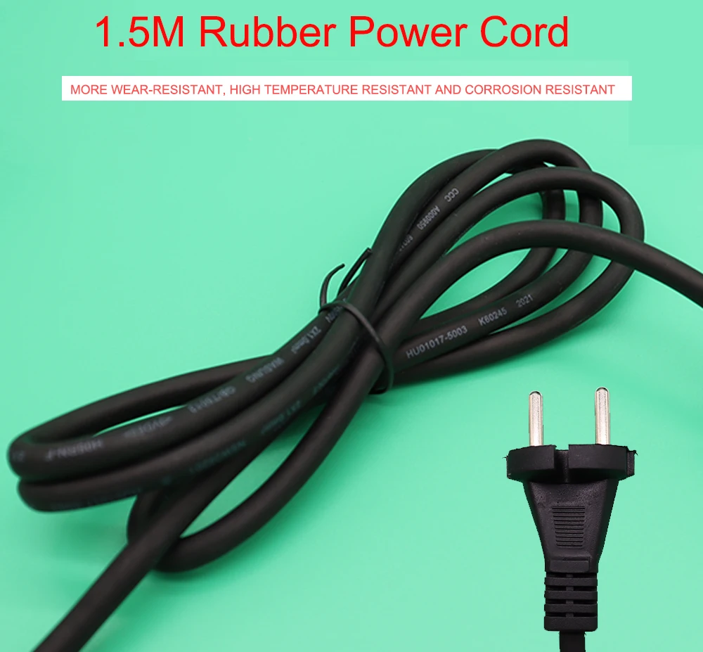 Шнур питания: резиновый шнур питания + европейский стандарт с двумя вилками 3C, сертификационный стандарт 1,8 м (внешний 1,5 м), включая заземление