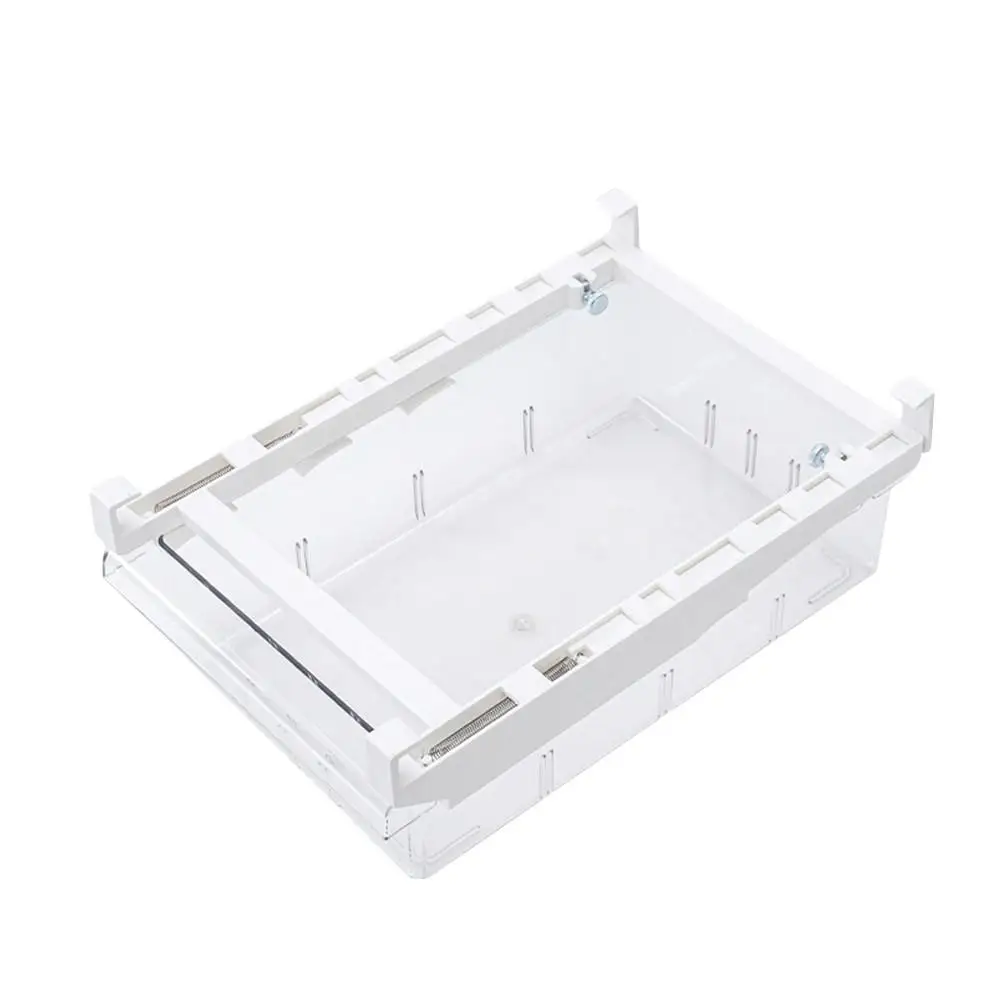 2. 3 стиля на выбор: 1 отделение/4 отделения/8 отделений. Отвечает вашим потребностям.3. Регулируется: длина направляющей выдвигается от 11,4 до 18,5 дюймов. Гладкая направляющая обеспечивает легкое открывание и закрытие ящика. Контейнер органайзер для морозилки подходит для большинства холодильников стандартного размера