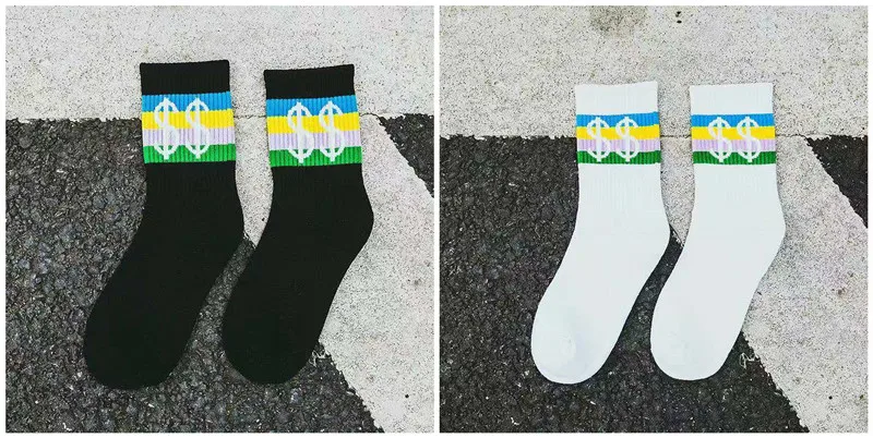 1 пара, носки унисекс, новые модные брендовые хлопчатобумажные ящные модные деньги Богатые женские носки скейтборд вспыш и чудо-уличные днем длинные женские носки в продаже