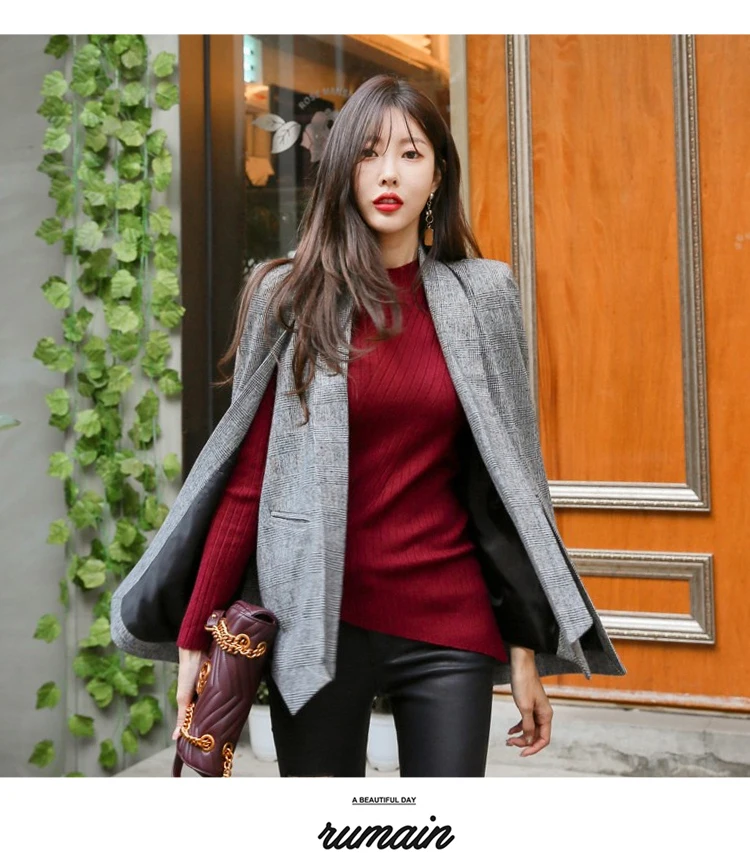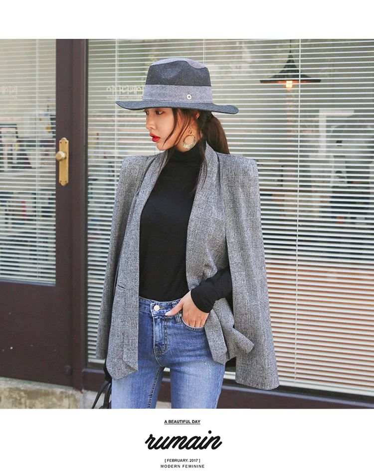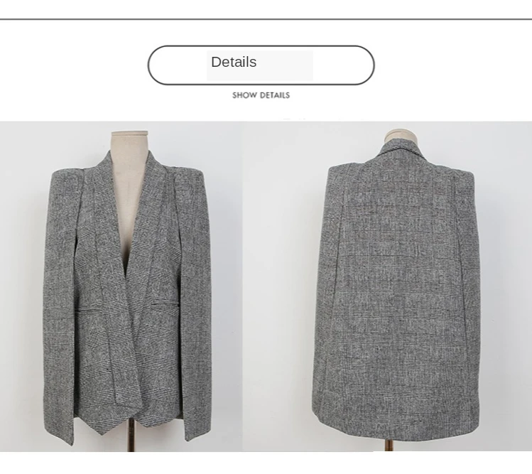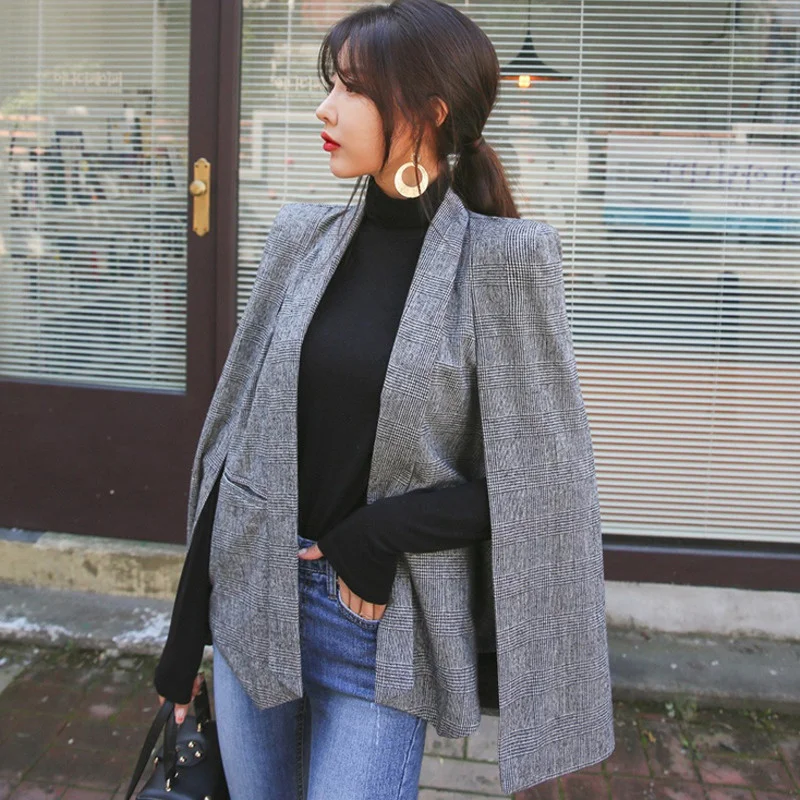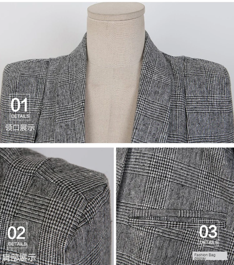 Осенний Новый клетчатый черный Блейзер, женский пиджак с надрезом, ...
