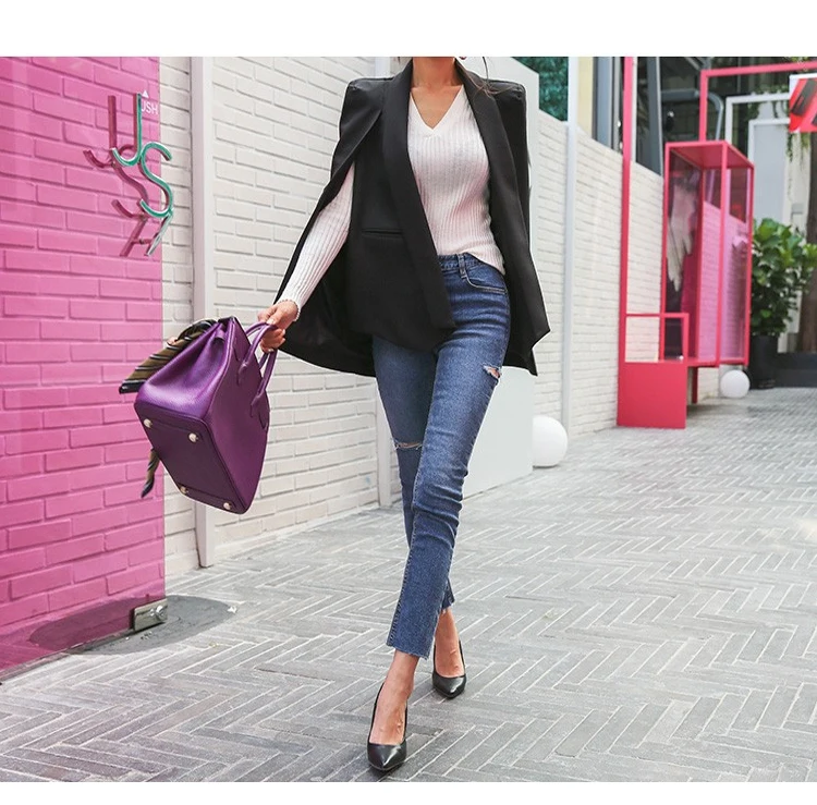 Женский пиджак-накидка, повседневный облегающий пиджак-пончо с лацк...