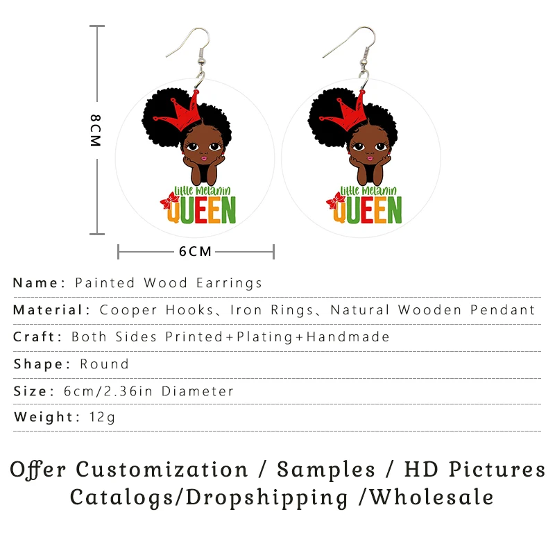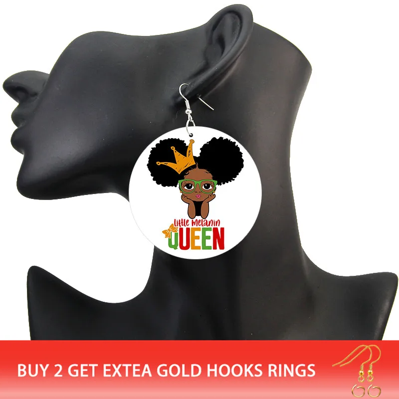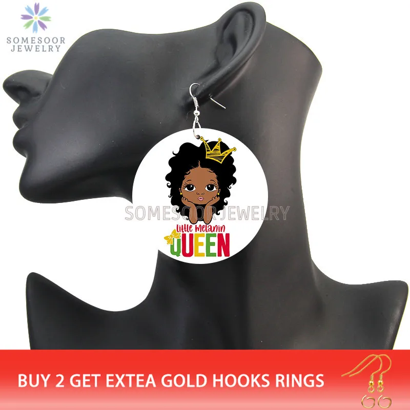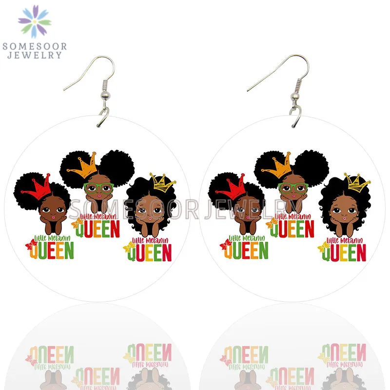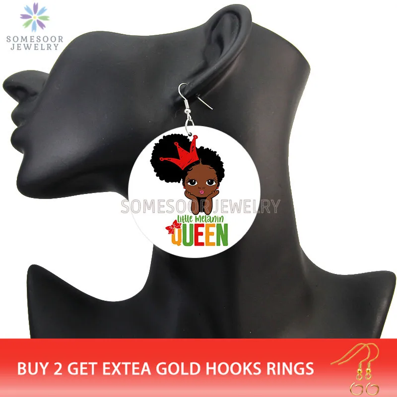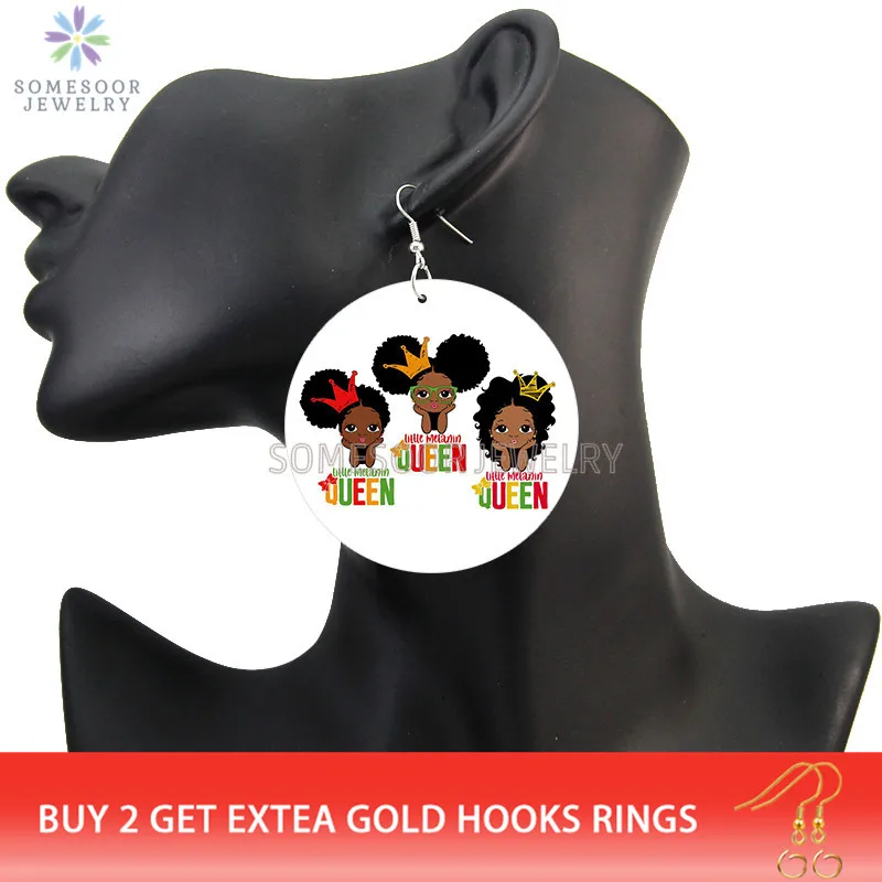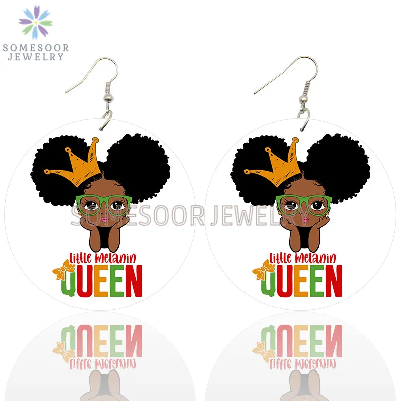 SOMESOOR афро маленькая меланин королева натуральные волосы деревянные висячие серьги черный кудрявый Poppin Художественная печать петли Висячие для женщин Подарки