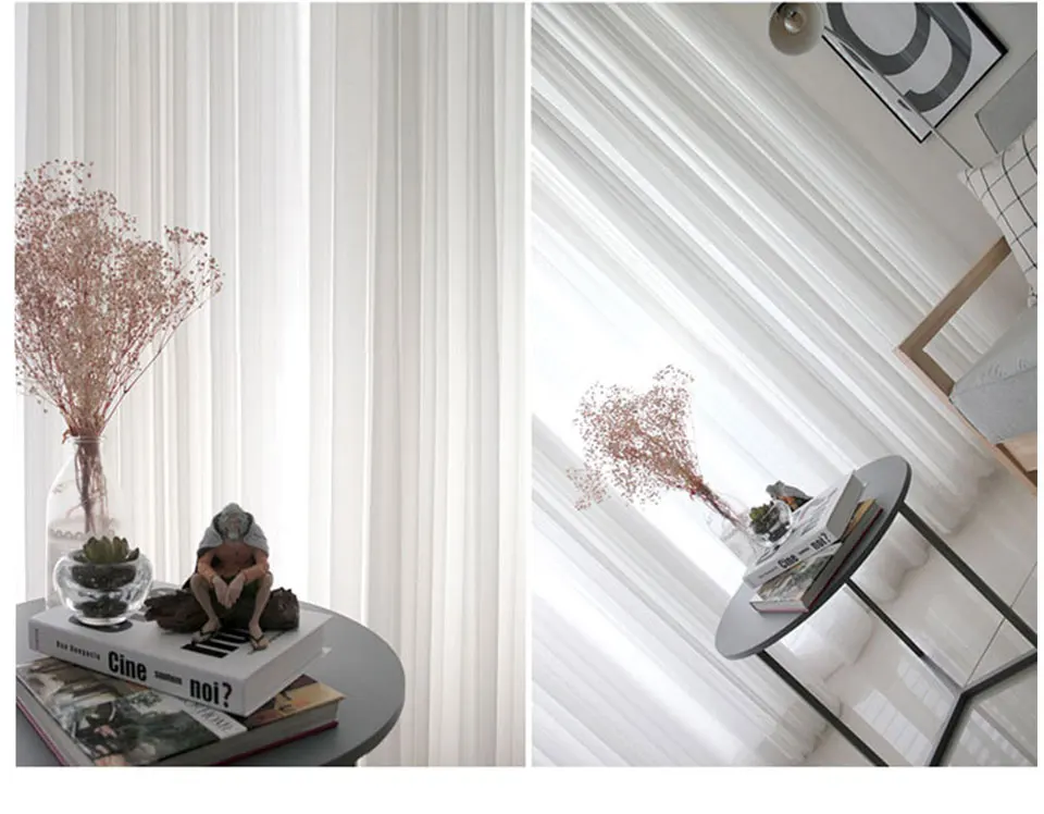 Белая шифоновая Тюлевая занавеска для гостиной, мягкая сплошная занавеска для спальни, кухни, отделка окон, драпировка, украшение