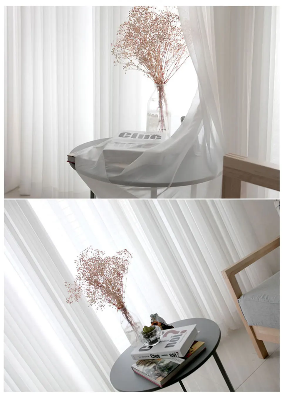 Белая шифоновая Тюлевая занавеска s для гостиной, мягкая прозрачная занавеска для спальни, кухни, обработка окон, законченная вуаль, драпировка, украшение