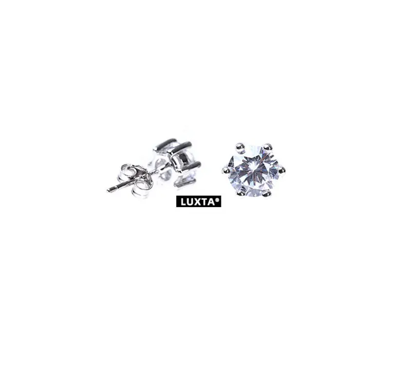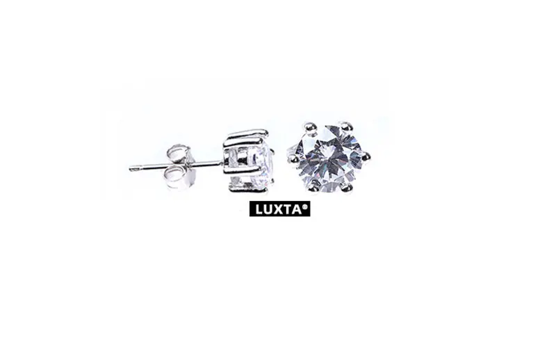 Твердые 925 стерлингового серебра 6 когти серьги-гвоздики Круглый 6 мм 8 мм 5A с кубическим цирконием ювелирные украшения для мужчин для женщин с покрытием 18-ти каратным белым золотом