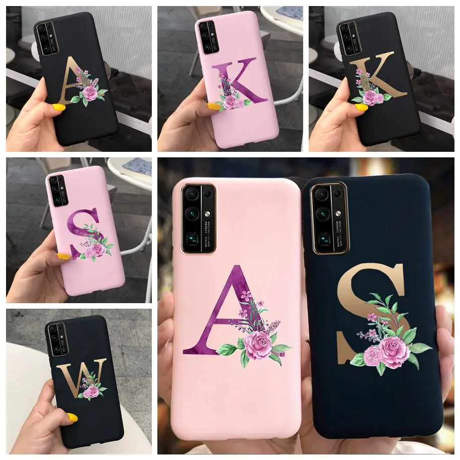 Чехол для Huawei Honor 30 Pro Plus, мягкий ТПУ матовый с буквами алфавита, с бампером EBG-AN10