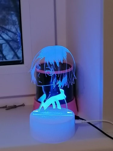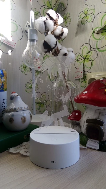 ох мой муженёк. достаточно небольшой. брала с 7-ю цветами, так же есть много режимов. он может работать от кабеля или на батарейках. управляется одной кнопкой. один минут- не очень крепко держится на подставке, но не критично