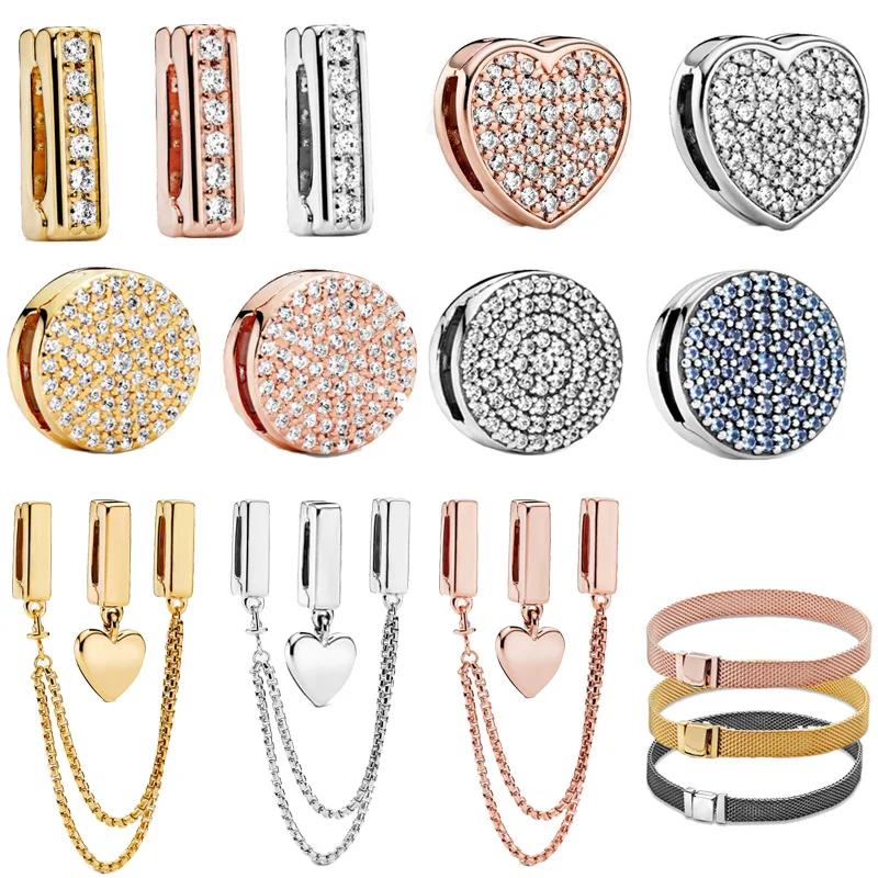 Оригинальные сверкающие подвески-клипсы Pandora серебряные бусины 9...