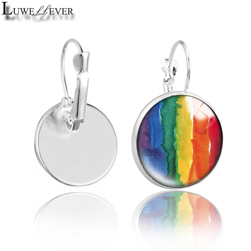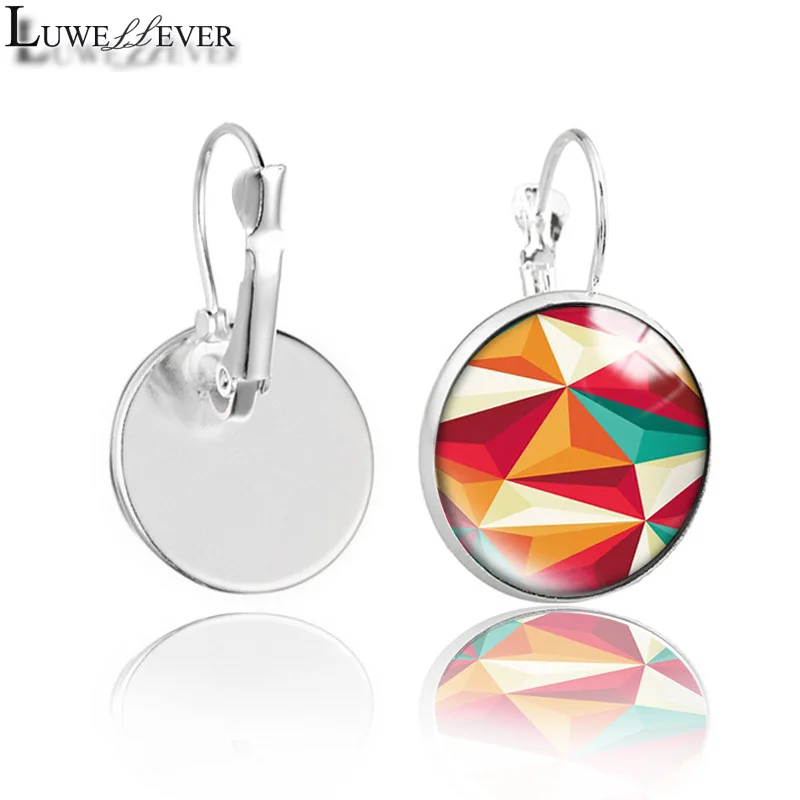 Новые 628 красочные геометрические 16 мм стеклянные бронзовые металлические серьги круглые кабошон серьги-гвоздики очаровательные ювелирные изделия для женщин подарок