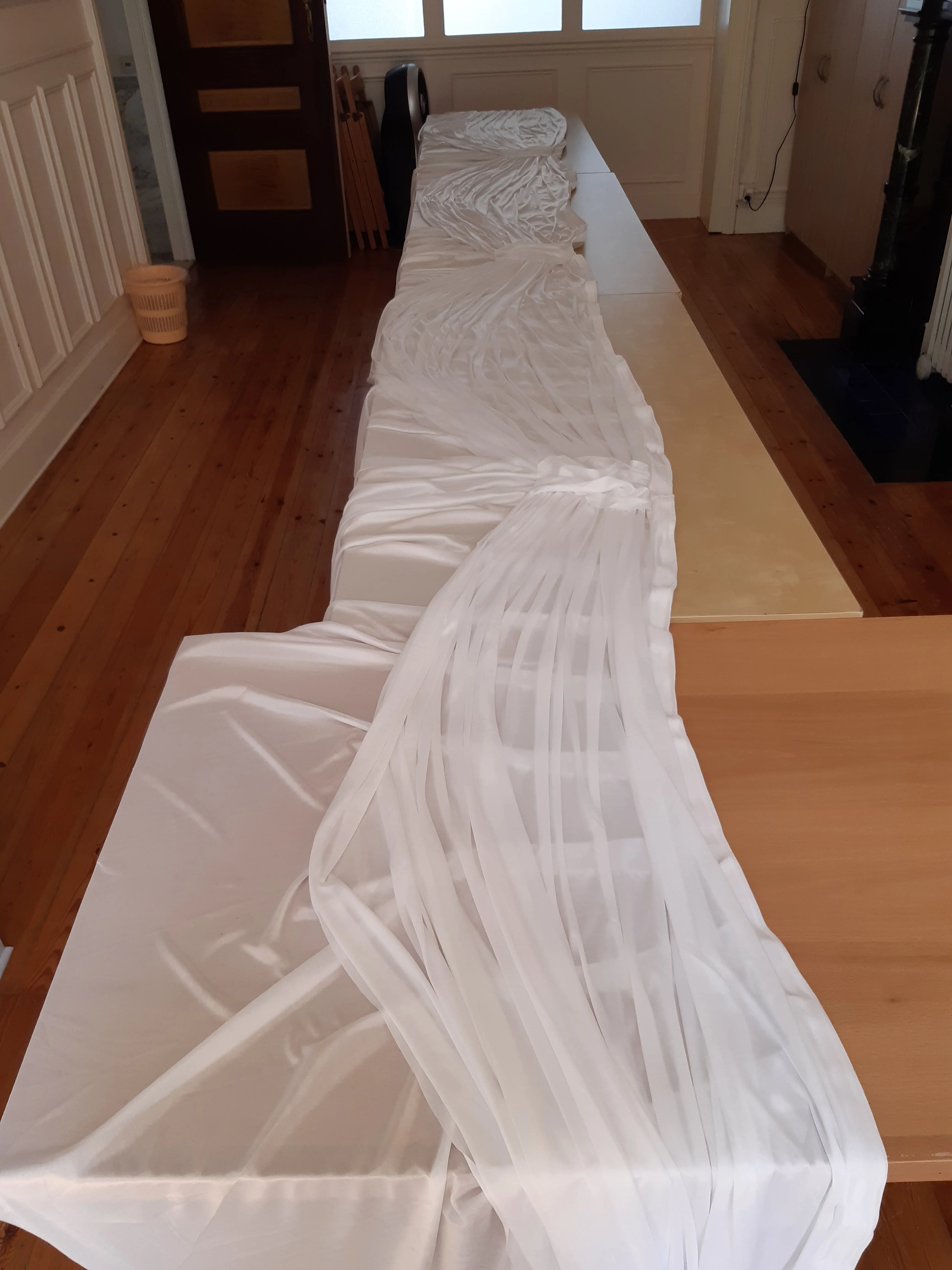 Скатерть прибыла в целости и сохранности (я боялся увидеть порванную упаковку, но скатерть не было пятен). Измерения верны. Ткань тяжелая, поэтому хорошо ложится, с другой стороны, она довольно прозрачная. Для внутреннего использования это должно произойти. Есть лента на липучке, сшитая по всей длине, но другая сторона (приклеенная к столу) не предусмотрена, тоже плохо.