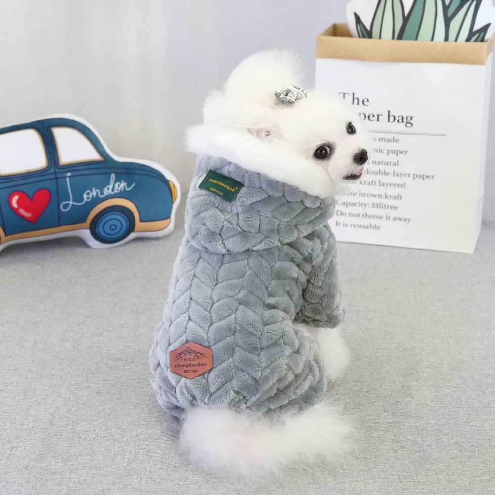 Одежда для собак, зимняя теплая двухслойная бархатная куртка в британском стиле, комбинезон с четырьмя лапами, утепленный комбинезон для собак и кошек