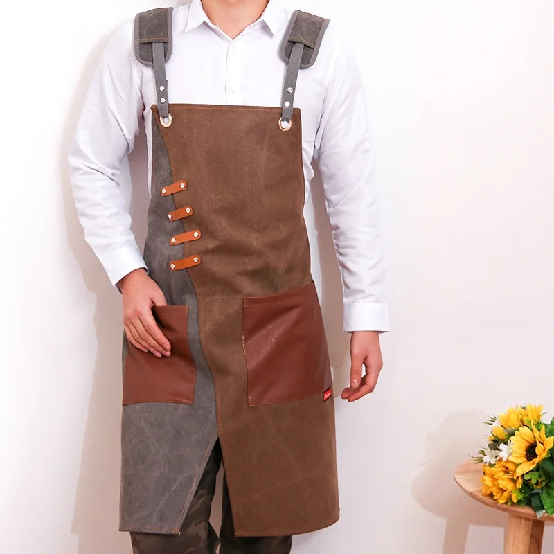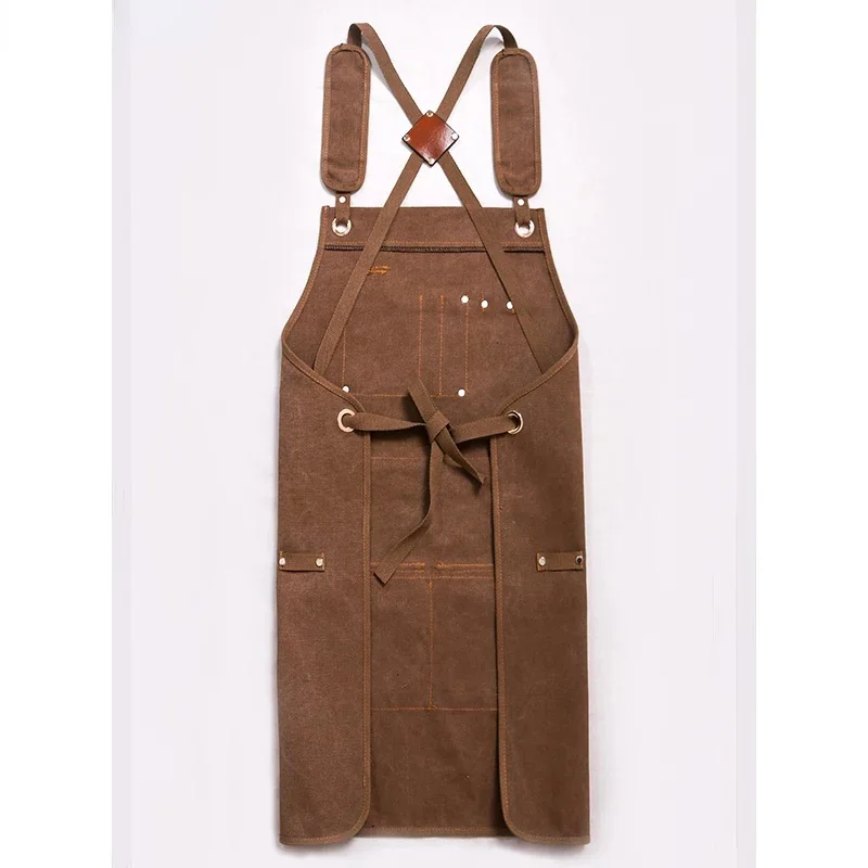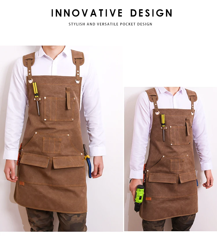 Прочные товары, тяжелые, вощеные, унисекс, брезентовые рабочие фартуки с карманами для инструментов, перекрестные ремни сзади, регулируемые для деревообрабатывающей живописи