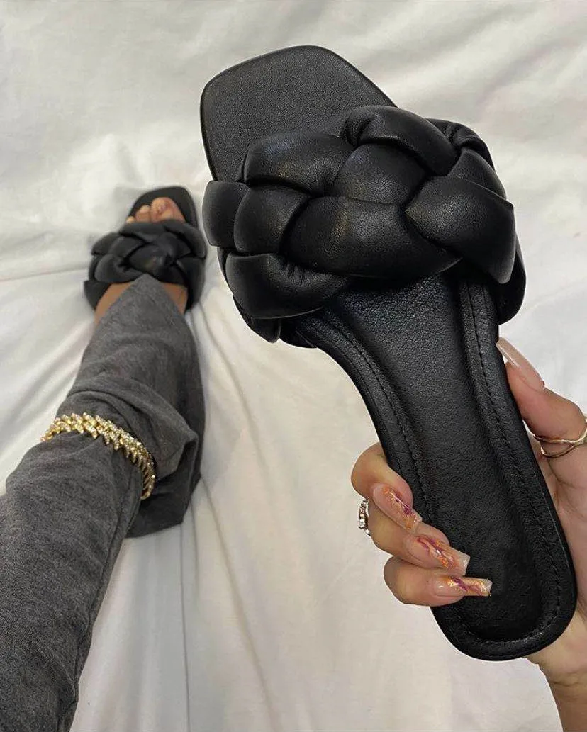 Тапки женские плетеные на плоской подошве, роскошные элегантные шле...