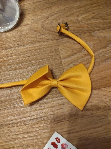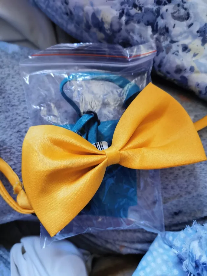 Заказ получен. Доставка на Урал больше месяца. Выглядит как на фото. Надели на кота, он этот бантик за полчаса оторвал, позже и крепление пластиковое отгрыз. В целом смотрелось хорошо, но одноразовый наряд. Продавца рекомендую