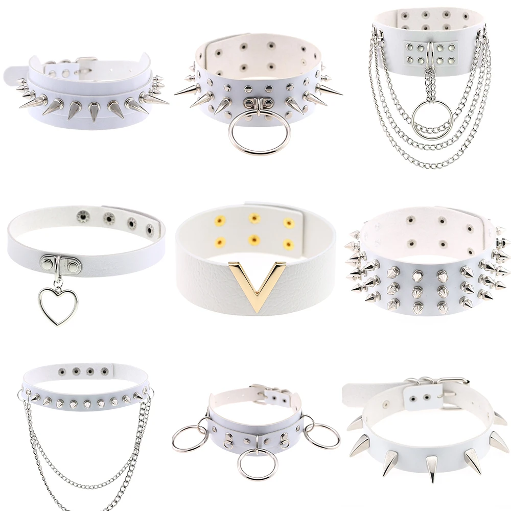 Ожерелье из белой искусственной кожи в стиле панк для женщин, Чокеры с круглыми шипами и заклепками, ожерелье, сексуальный ошейник для тела, подарки на вечерние, ювелирные изделия, 2021