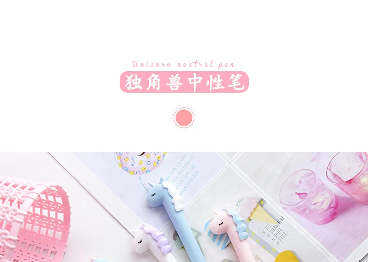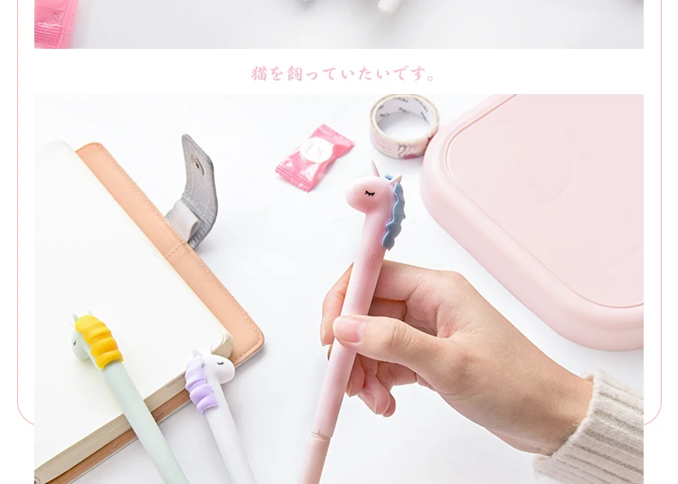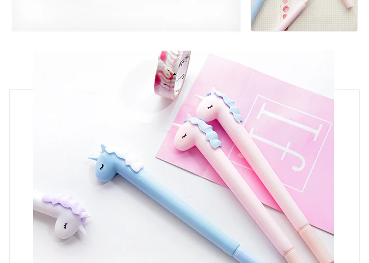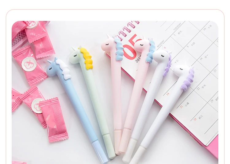 Милые гелевые ручки карамельного цвета с единорогом, мягкая пластиковая ручка Kawai для письма, подарок для детей, корейские канцелярские принадлежности, офисные и школьные принадлежности