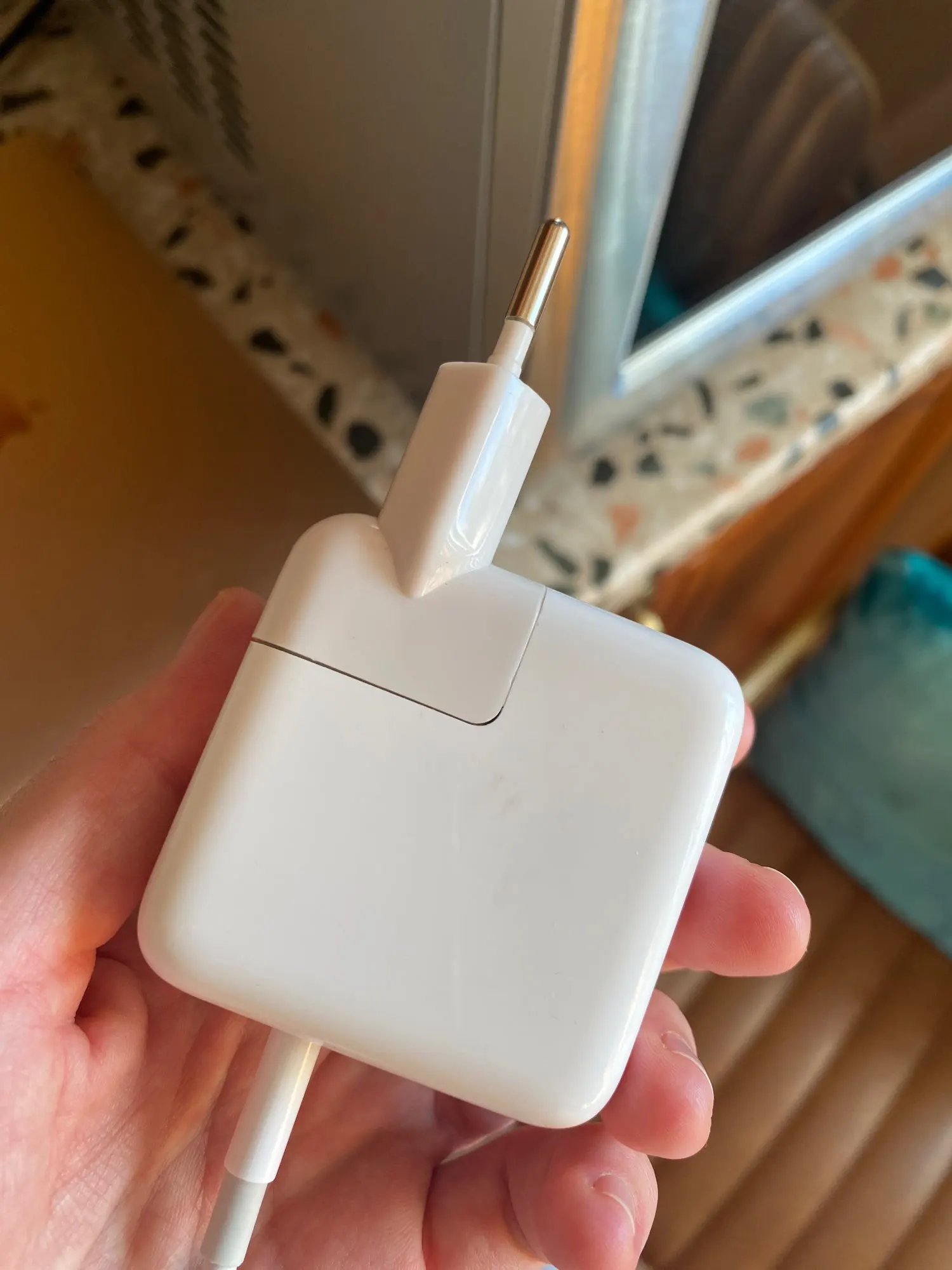 Преимущество 3Сделан из глянцевого белого пластика, как и сам адаптер питания
