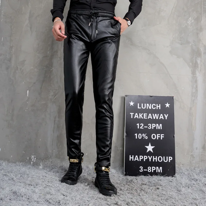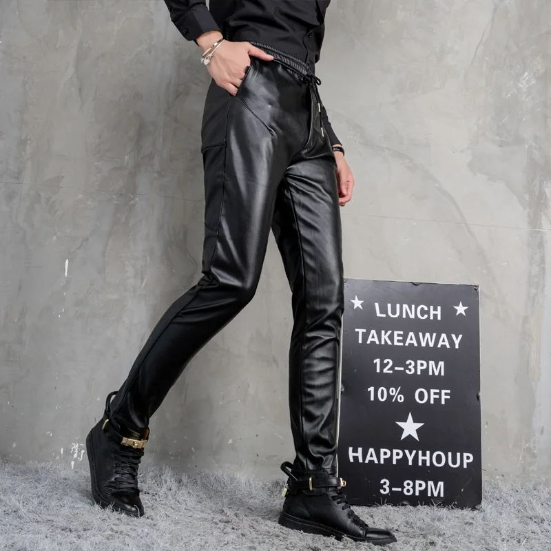 Брюки Brother Meng мужские кожаные, повседневные водонепроницаемые штаны из экокожи, с эластичным поясом, черные, на осень и зиму