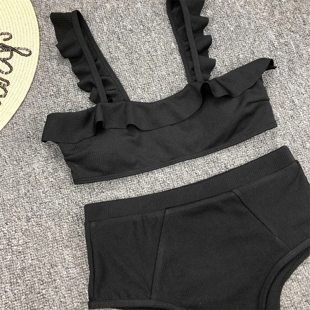 Купальник женский, с высокой талией, с рюшами, пуш-ап, 2021