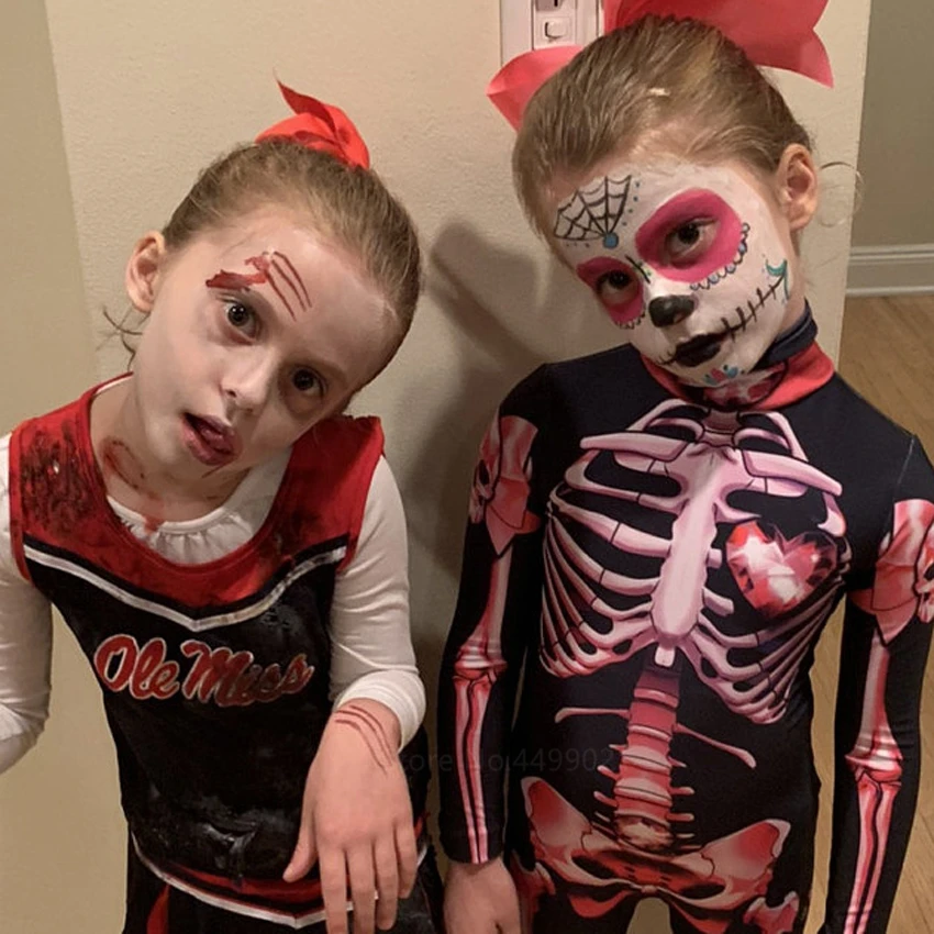 Костюм на Хэллоуин для женщин и детей, костюм со страшным дьяволом мертвецов и принтом скелета, комбинезон ведьмы, косплей, Хэллоуин для взрослых и детей, карнавальвечерние