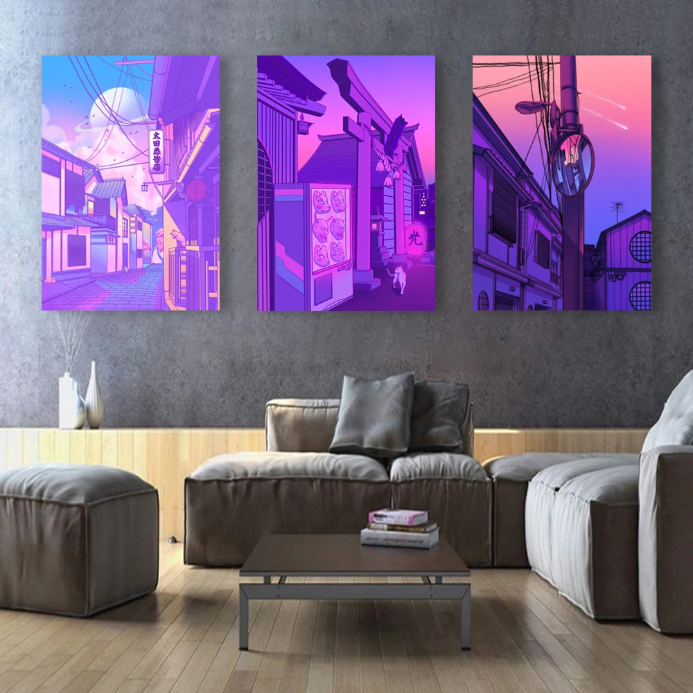 Настенная живопись, домашний мультяшный Декор фиолетового цвета, городской декор, картины, современный плакат, модульные картины для гостиной, картины в рамке