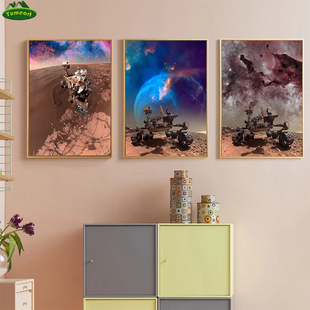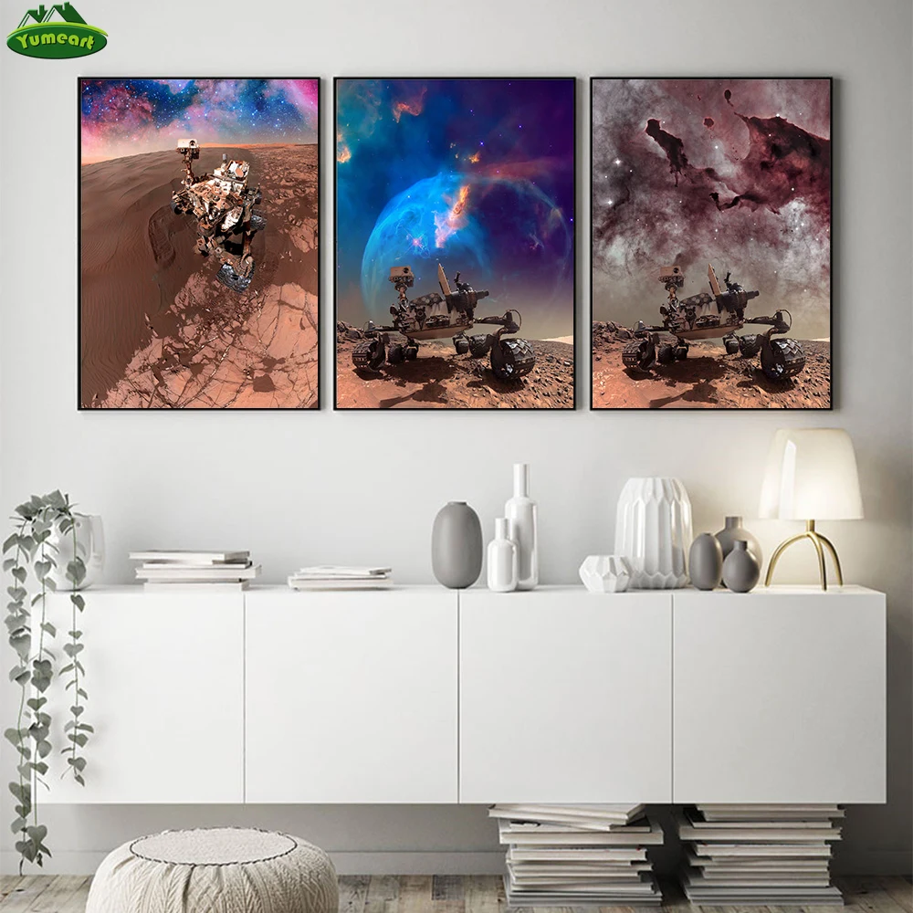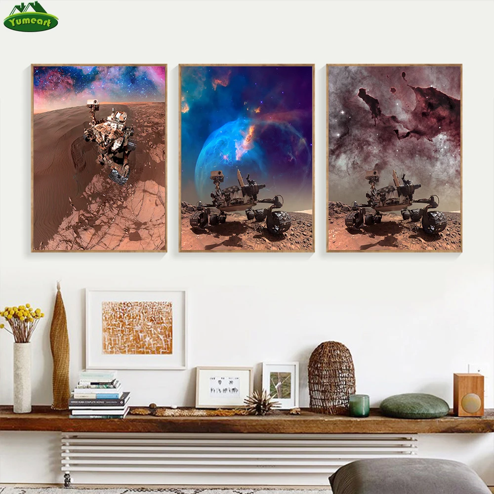 Любопытство Ровер исследование поверхности Марса Холст Картина Вселенная Планета Земля Луна образование плакат для детской настенное искусство