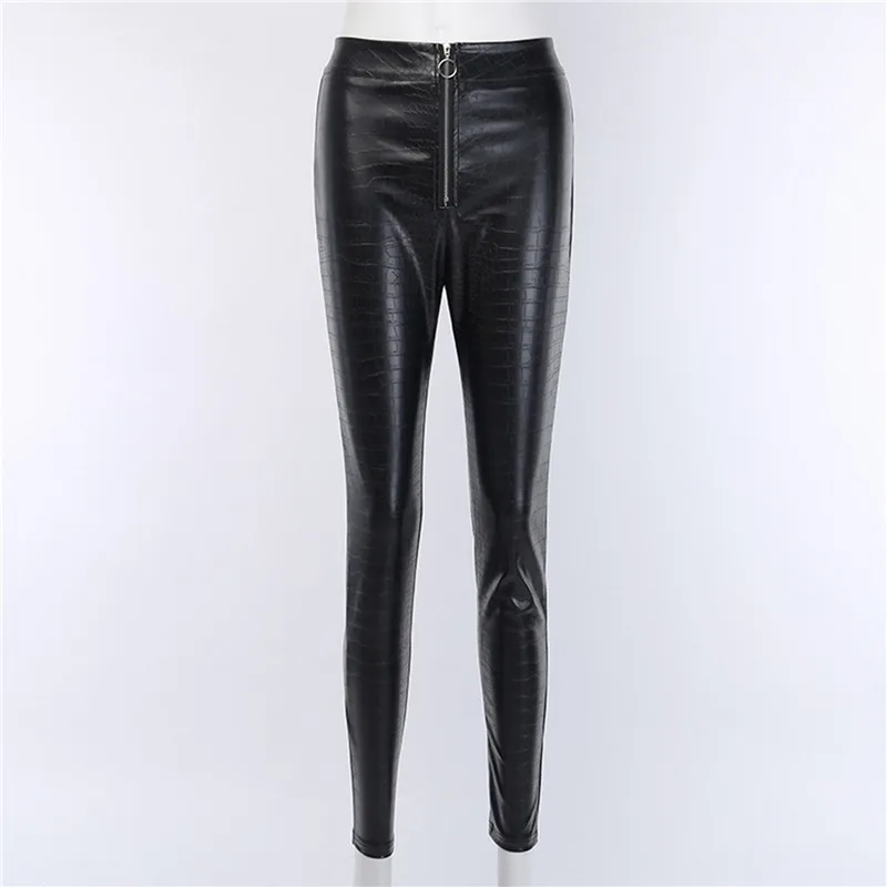 Женские модные брюки из искусственной кожи, осенние брюки с высокой талией на молнии, уличная одежда, женские сексуальные Клубные брюки Pencli