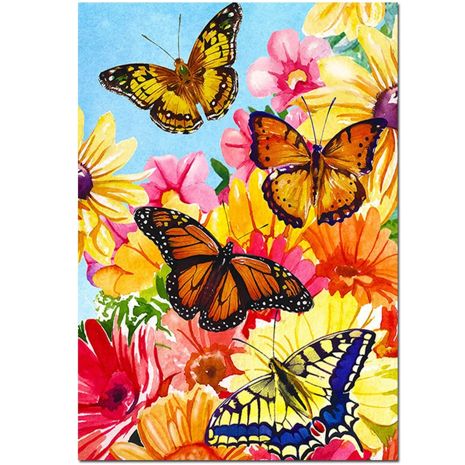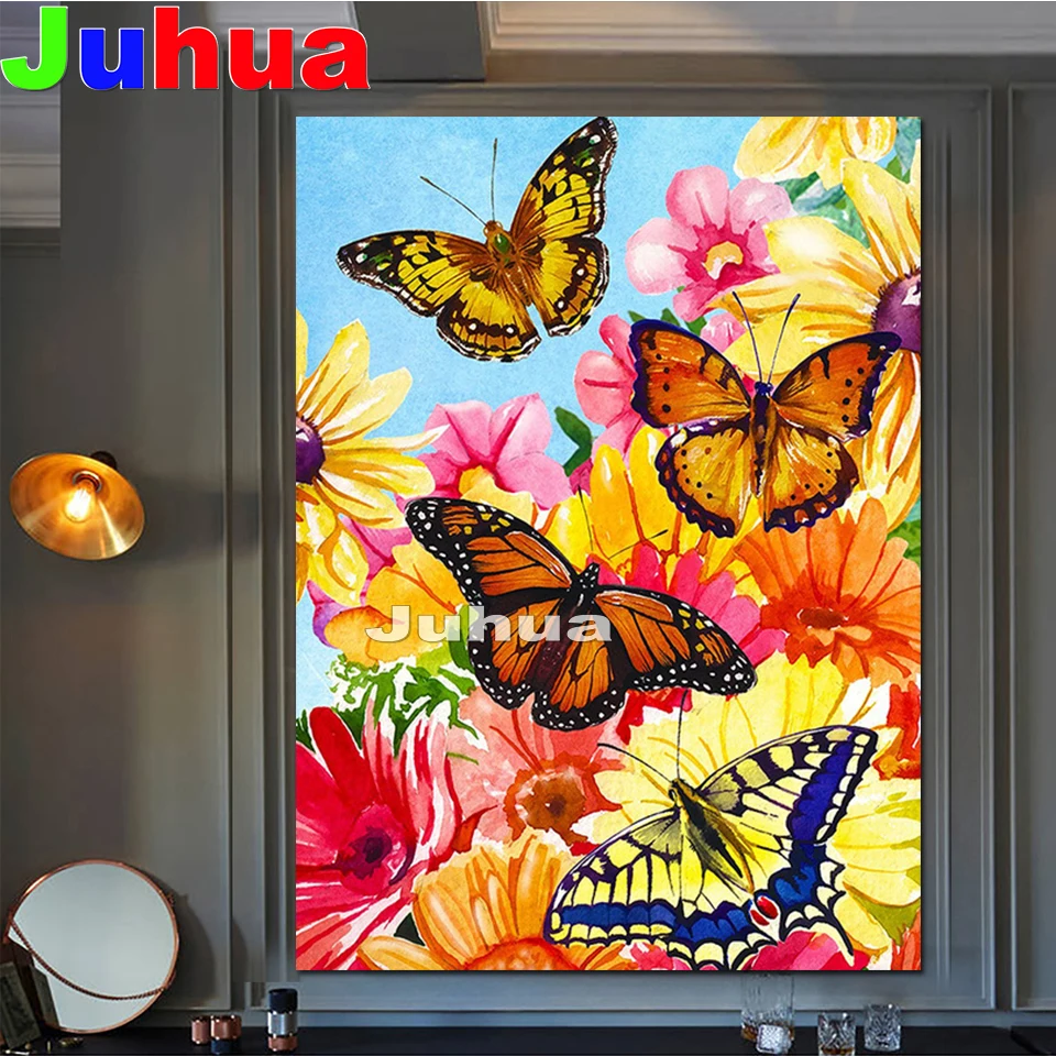 Алмазная 5D картина сделай сам, часы мечты, Бабочка, красные цветы,...