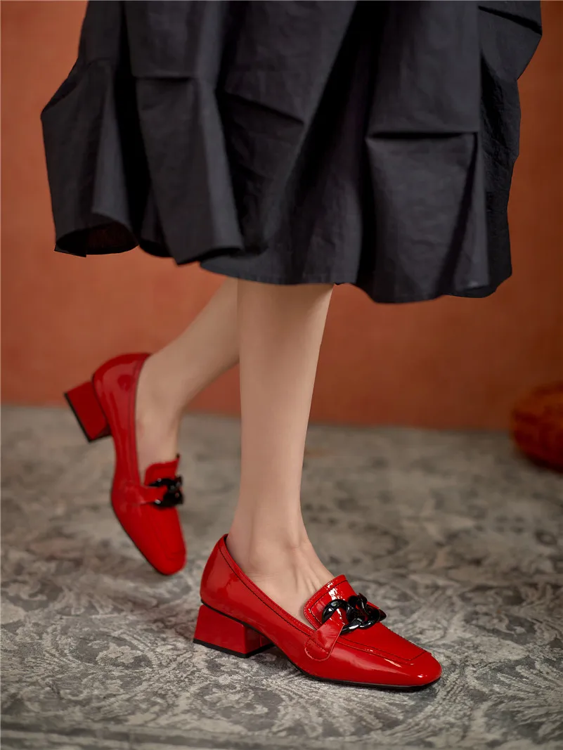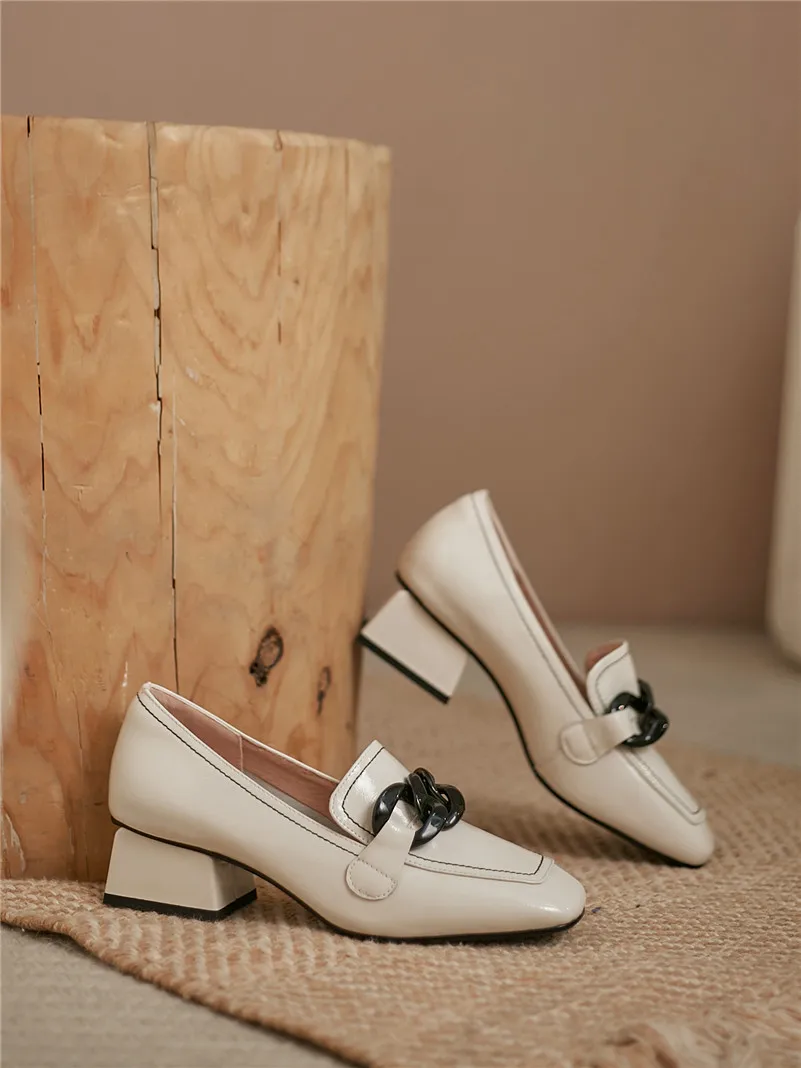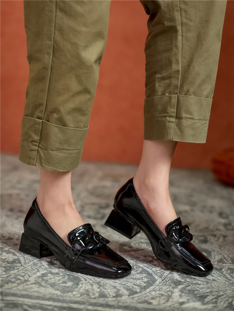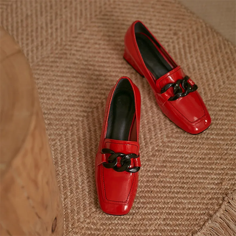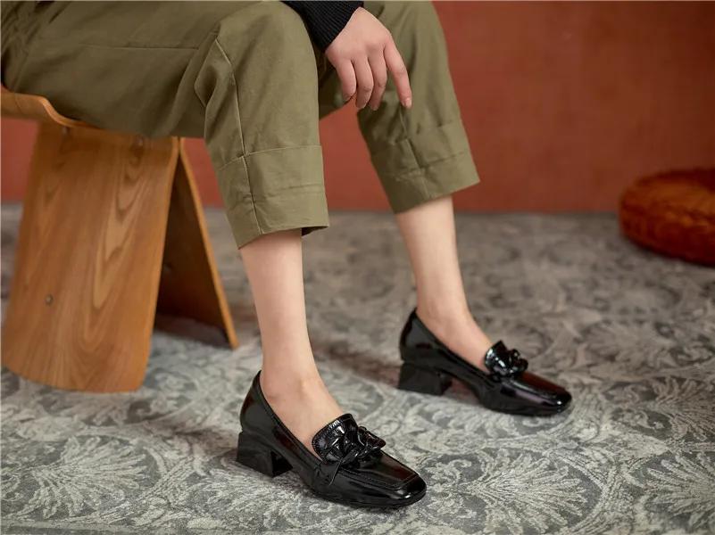 Туфли-лодочки женские из натуральной кожи, с квадратным носком