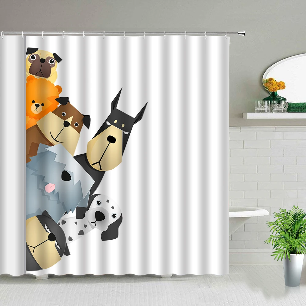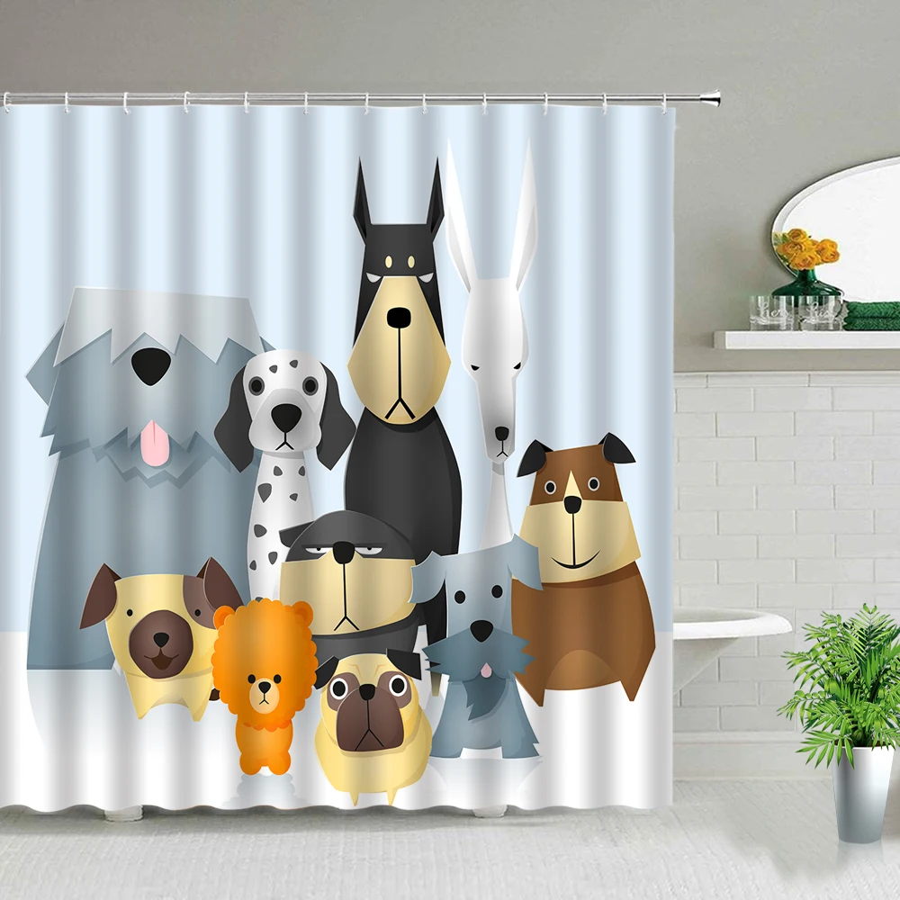 Набор штор для душа с мультипликационным принтом кошки и собаки, милые животные, принт, детская комната, ванная комната, украшение для дома, водонепроницаемые занавески