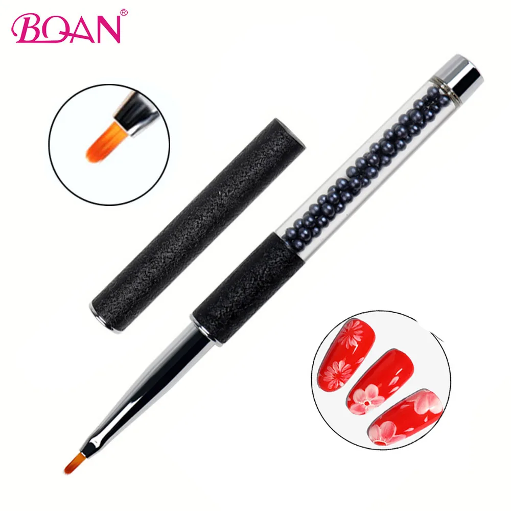 Металлическая черная Кисть для ногтей BQAN, ручка с жемчугом, акриловый Гель-лак, Типсы для дизайна ногтей, лепестки цветов, инструменты для маникюра сделай сам