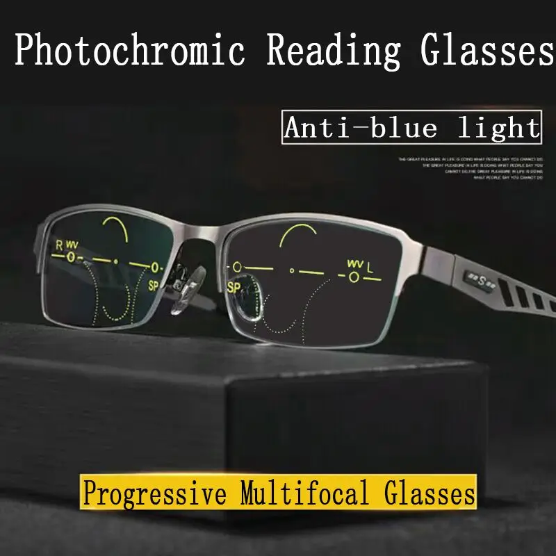 Очки для чтения мужские, женские, мужские, ультралегкие, в металлической оправе, Мультифокальные, для дальнозоркости, пресбиопии, прогрессивная фотохромная