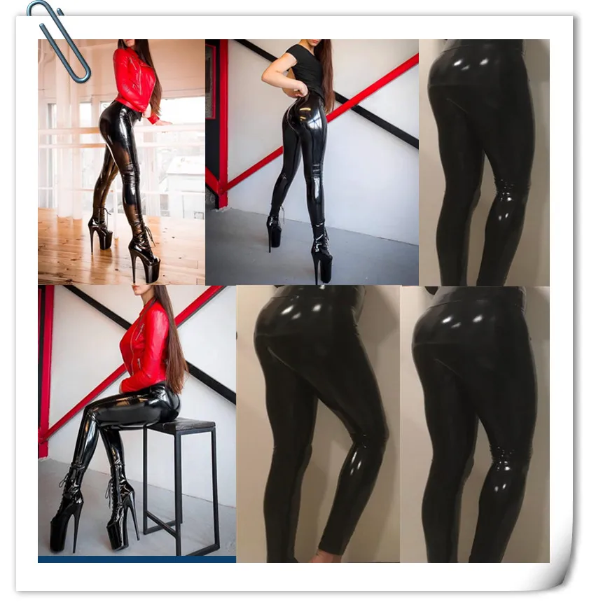 Женские леггинсы YGYEEG, черные облегающие леггинсы с высокой талией, эластичные, из искусственной кожи, блестящие, мокрые, металлические, латексные, длиной до щиколотки