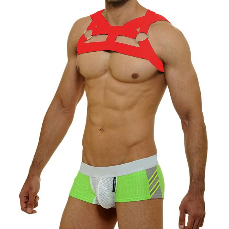 Мужские 3 металлические кольца, нагрудный ремень, наплечный бандаж, декоративные ремни, эластичная нагрудная портупея для мышц, модный костюм для клубной вечеринки