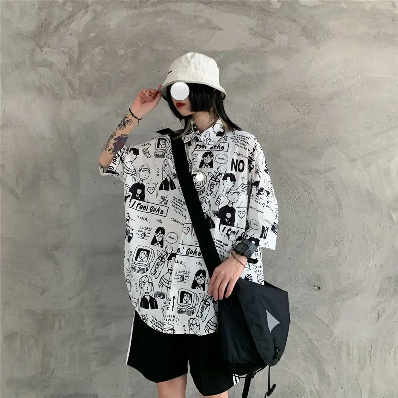 Женские винтажные рубашки с принтом аниме Harajuku, лето 2021, модн...