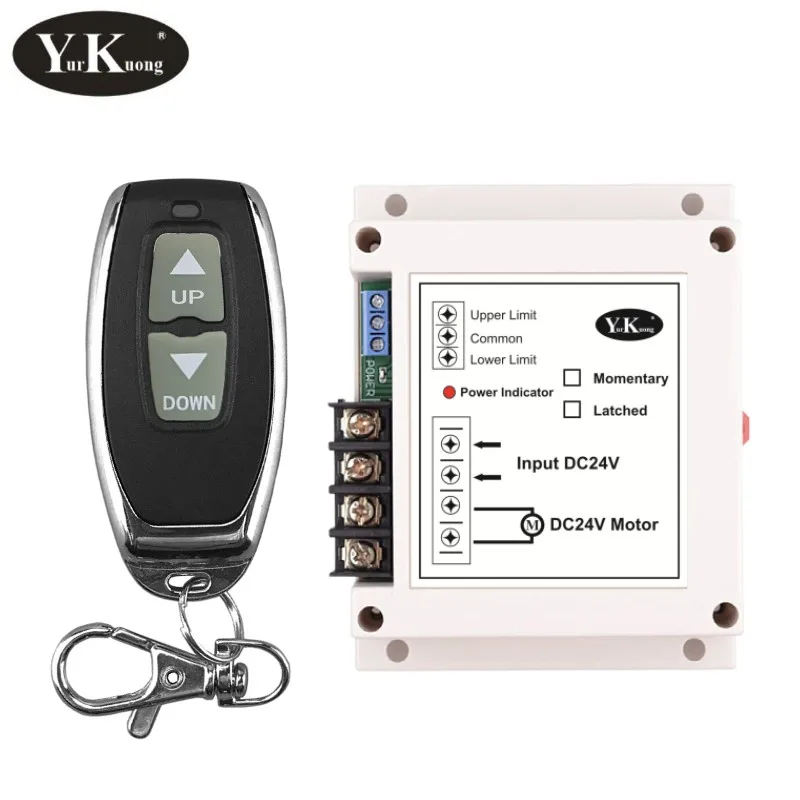 DC 12V Мотор вперед обратный вверх вниз стоп контроллер Рабочее напряжение: DC24V Максимальная нагрузка: реле 40A (имеет лучшую нагрузку менее 25A) имеет лучшую нагрузку менее 600 Вт Размер: 115*95*40 мм Тип управления: кнопка вверх-вниз измените выход приемника +-положение. Когда двигатель остановлен, выход составляет 0 В. Тип кода --------------- Кнопка обучения для добавления передатчика Выключите питание, затем включите снова, приемник все еще выключен, Приемник с индикатором питания светодиодный Режим работы: Мгновенная Блокировка регулируется переключателем «Режим блокировки» ------------ имеет 3s задержку для защиты. Мгновенный -------- переключение на «M» Защелкивающийся ------------- переключение на «L»